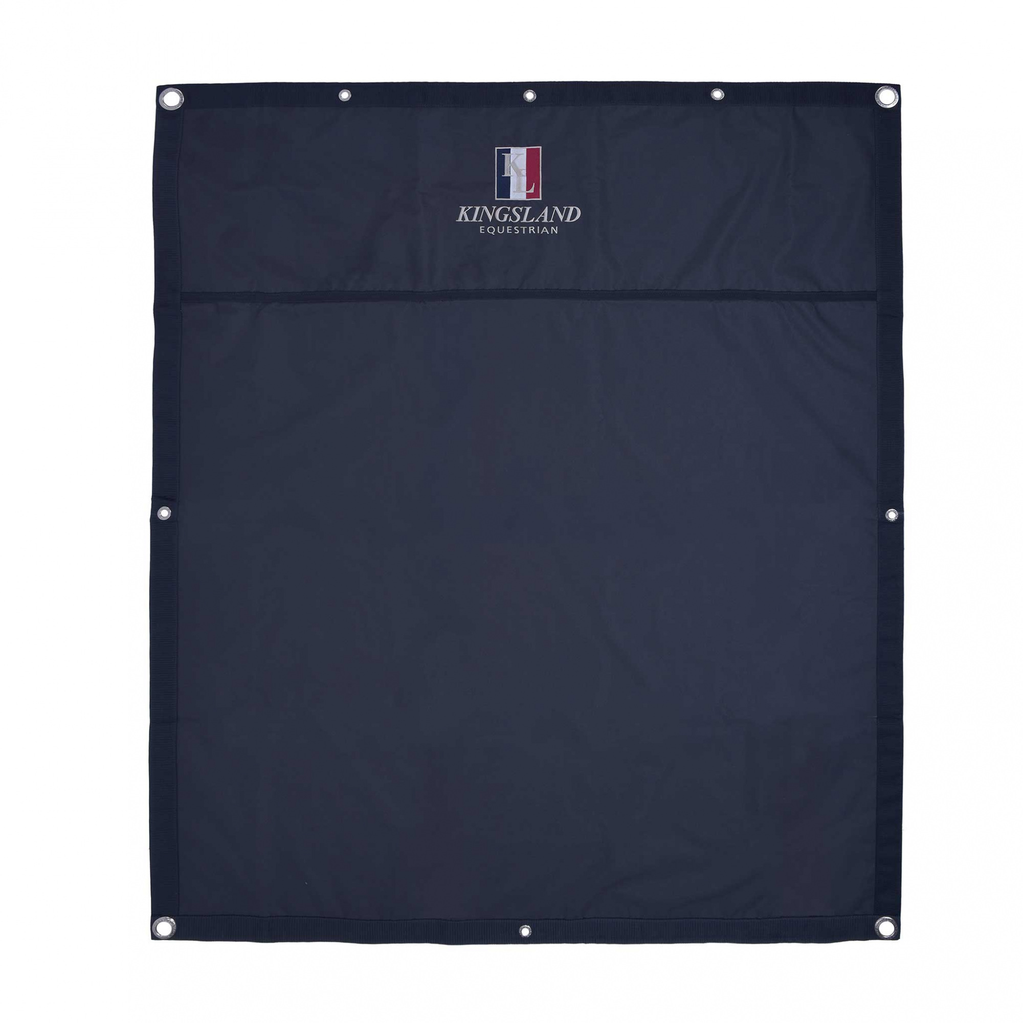 Ein Vorhang für die Box. Er wurde aus einem hochwertigem, wasserdichtem Stoff hergestellt. Er hat Metallösen für eine leichtere Montage. Im Set enthalten sind Spanngurte zur Befestigung. Der Vorhang ist mit dem Kingsland-Logo verziert.