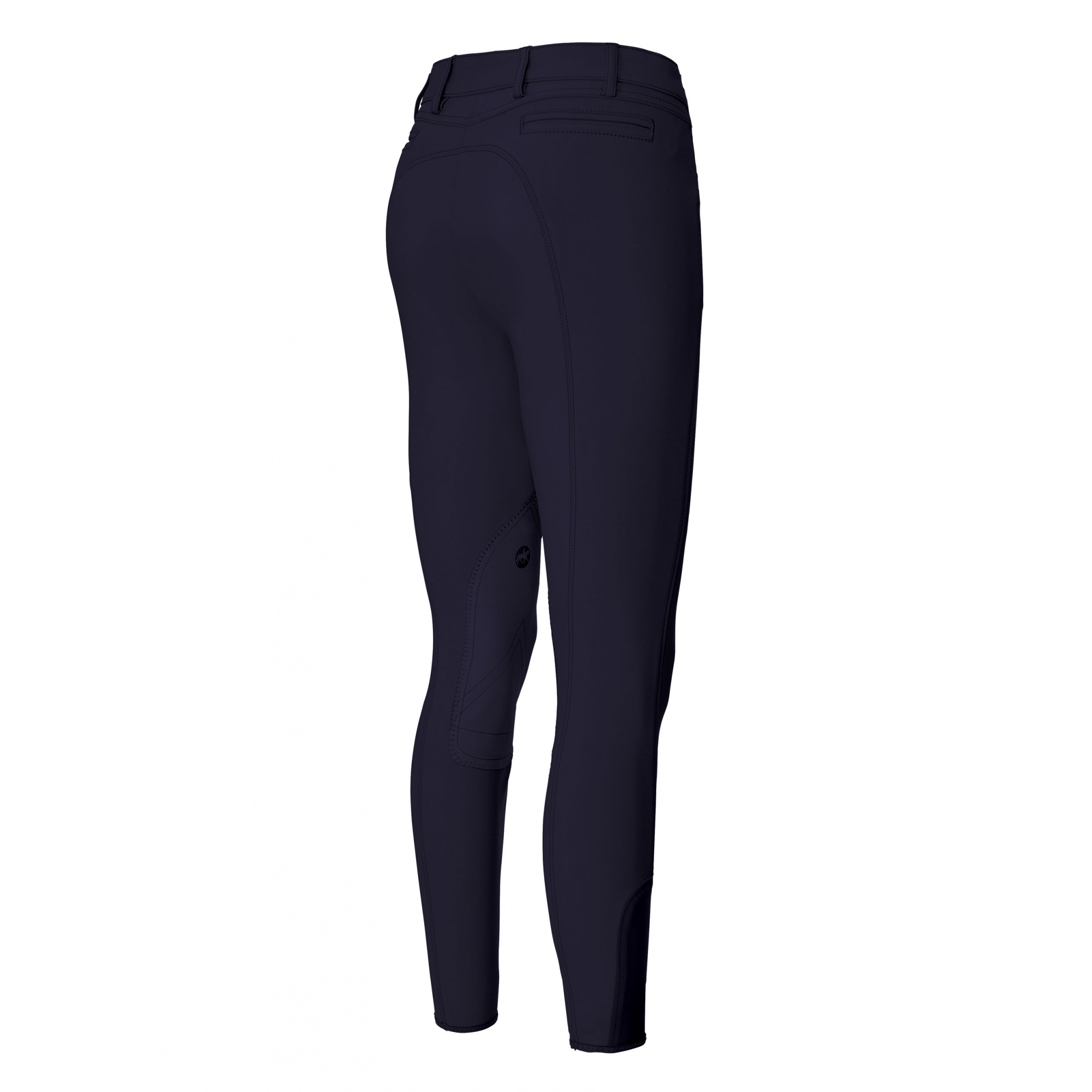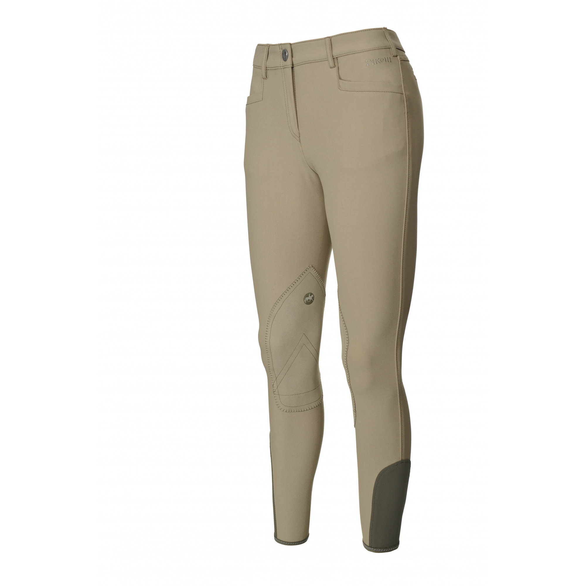 Das dekorative Element ist das gestickte Pikeur-Logo über der linken Tasche und über dem rechten Knie.