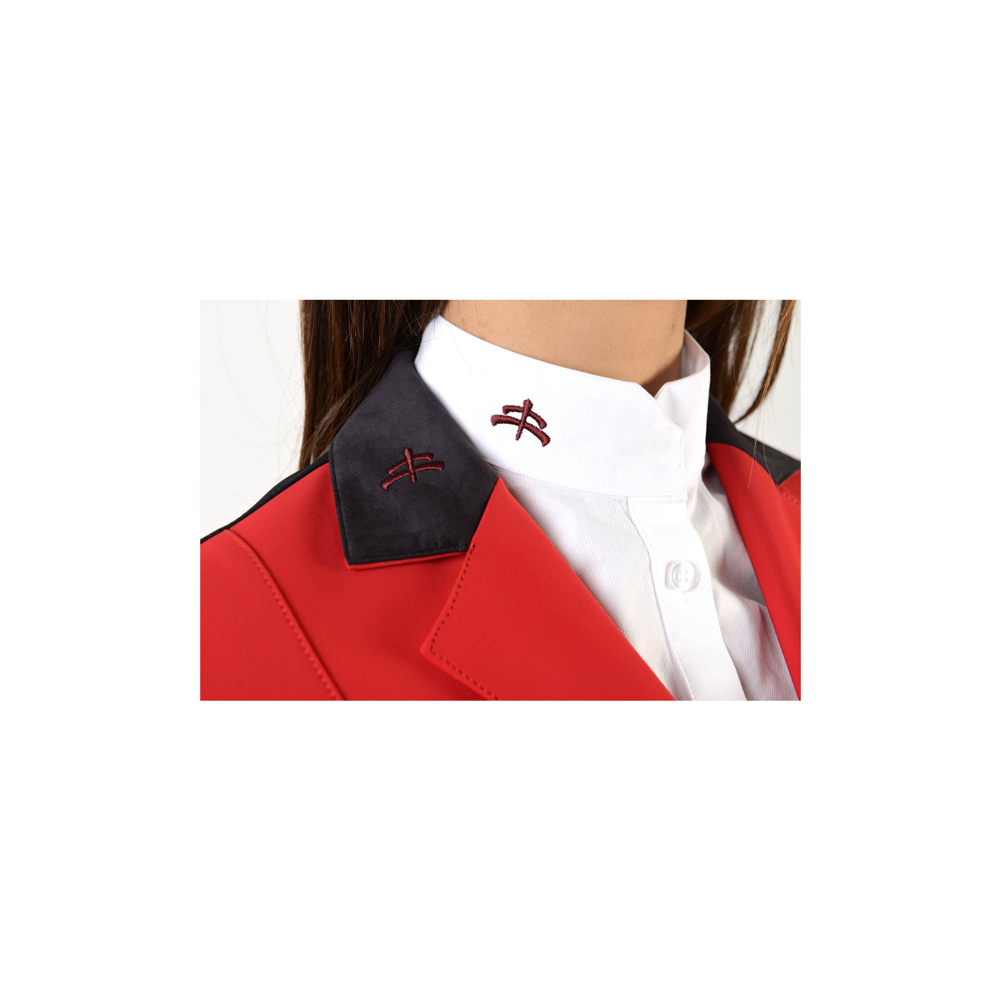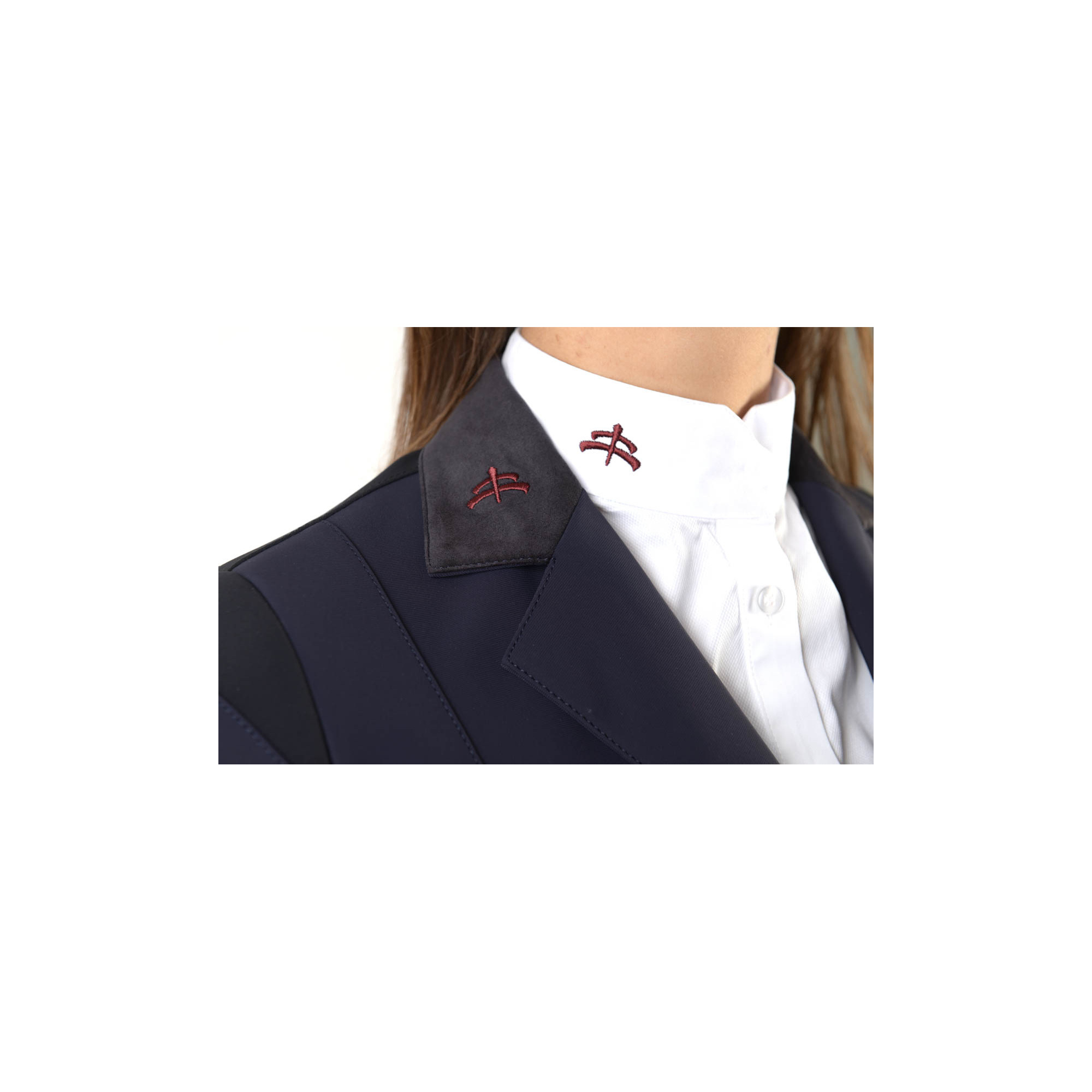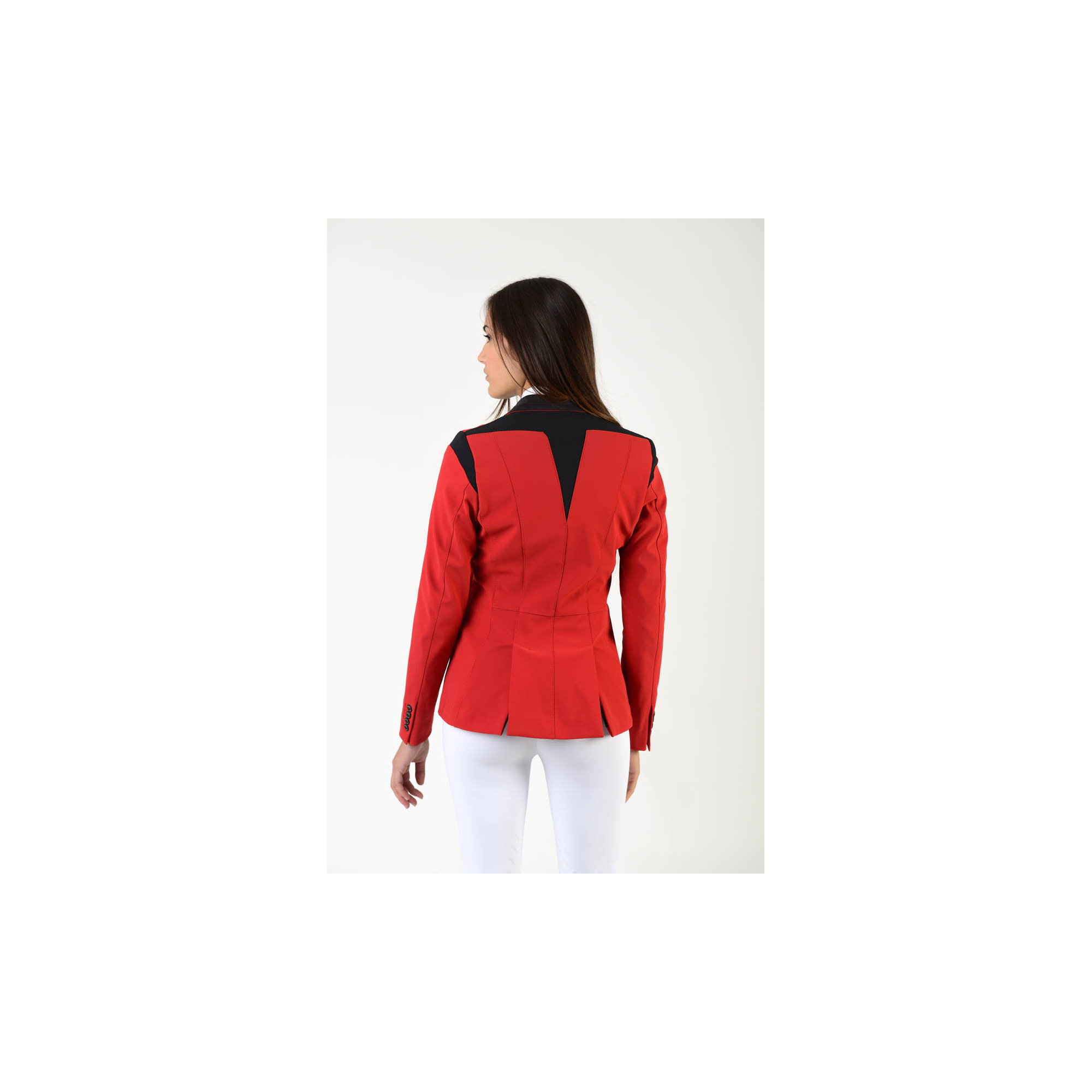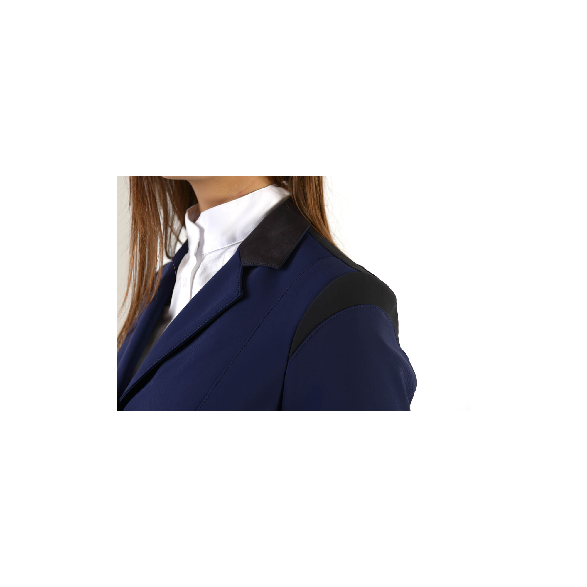 Extrem eleganter Turnierfrack. Er wurde aus einem hochwertigen technischen Material hergestellt. Bequem und atmungsaktiv. Der taillierte Schnitt betont schön die Figur und schränkt die Bewegung nicht ein. Er wird mit drei Knöpfen zugemacht. Der Frack ist mit einem dezenten Makebe-Logo am Satinkragen verziert.