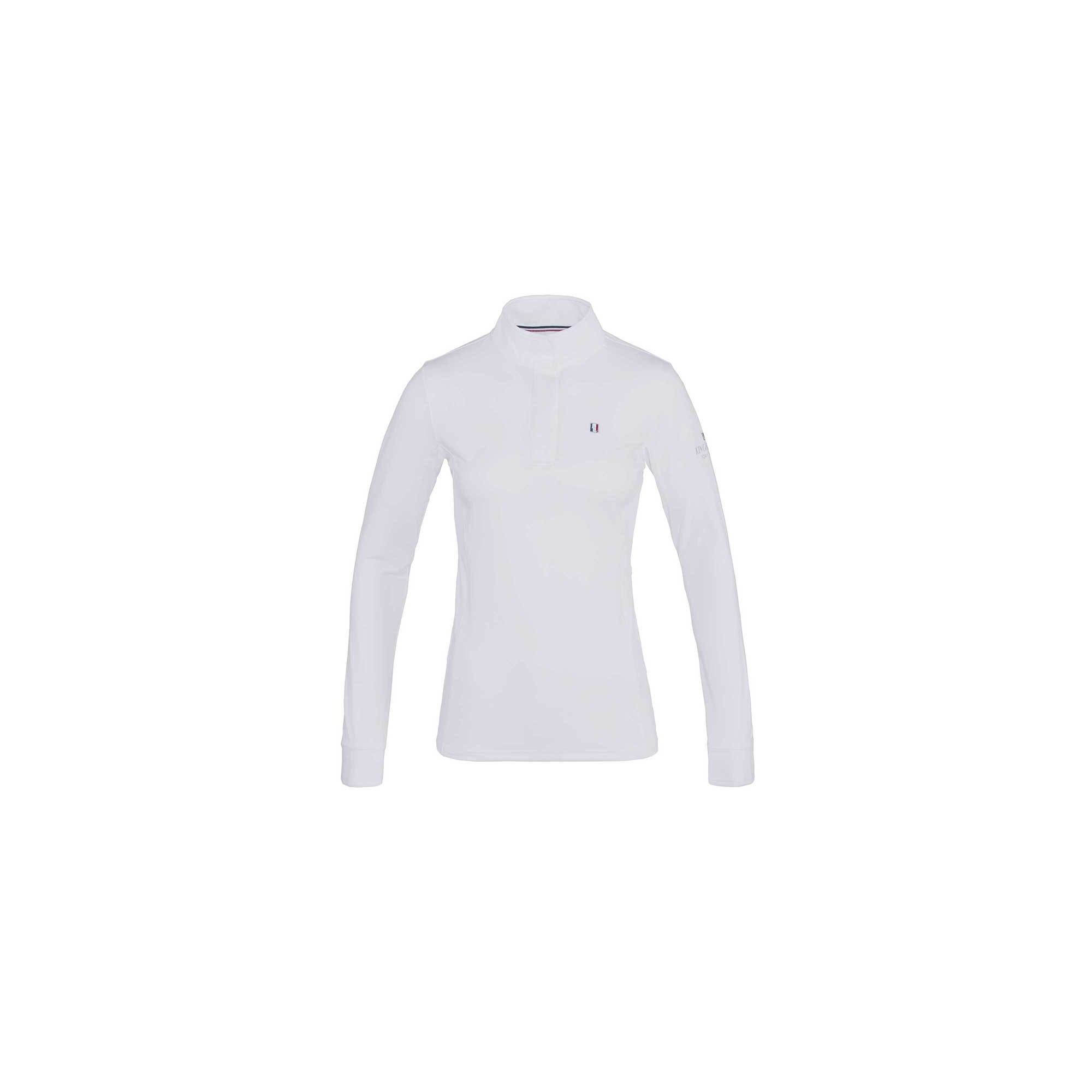 Classic Frauenturnierhemd mit langen Ärmeln. Es wurde aus einem flexiblen Stoff angefertigt, der sich perfekt der Figur anpasst. Auf beiden Seiten der Achselhöhle und an den Rippen wurde Mesh für besseren Komfort und Belüftung eingenäht. Die Ärmelbündchen am Hemd werden mit Druckknöpfen geschlossen. Der Stehkragen und die Vorderseite des Hemdes werden mit versteckten Druckknöpfen geschlossen. Auf der linken Brust und Schulter sind das Logo und der Kingsland Firmenname aufgestickt. Es ist in zwei Farben: Schwarz und Weiß erh)ltlich.