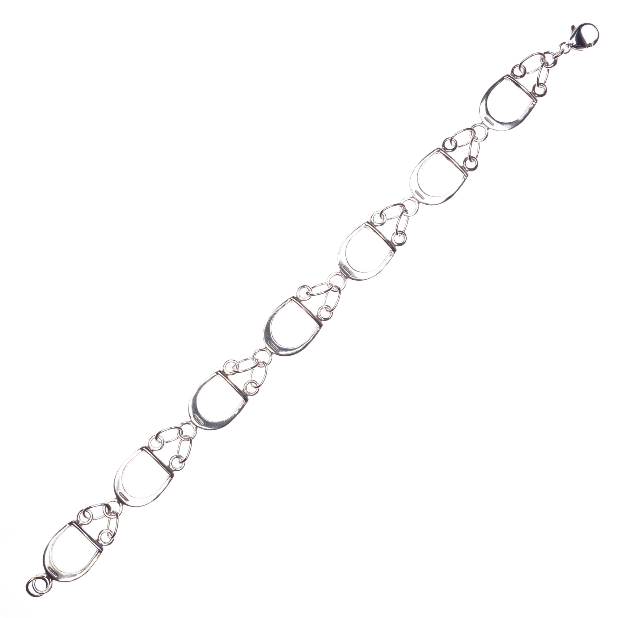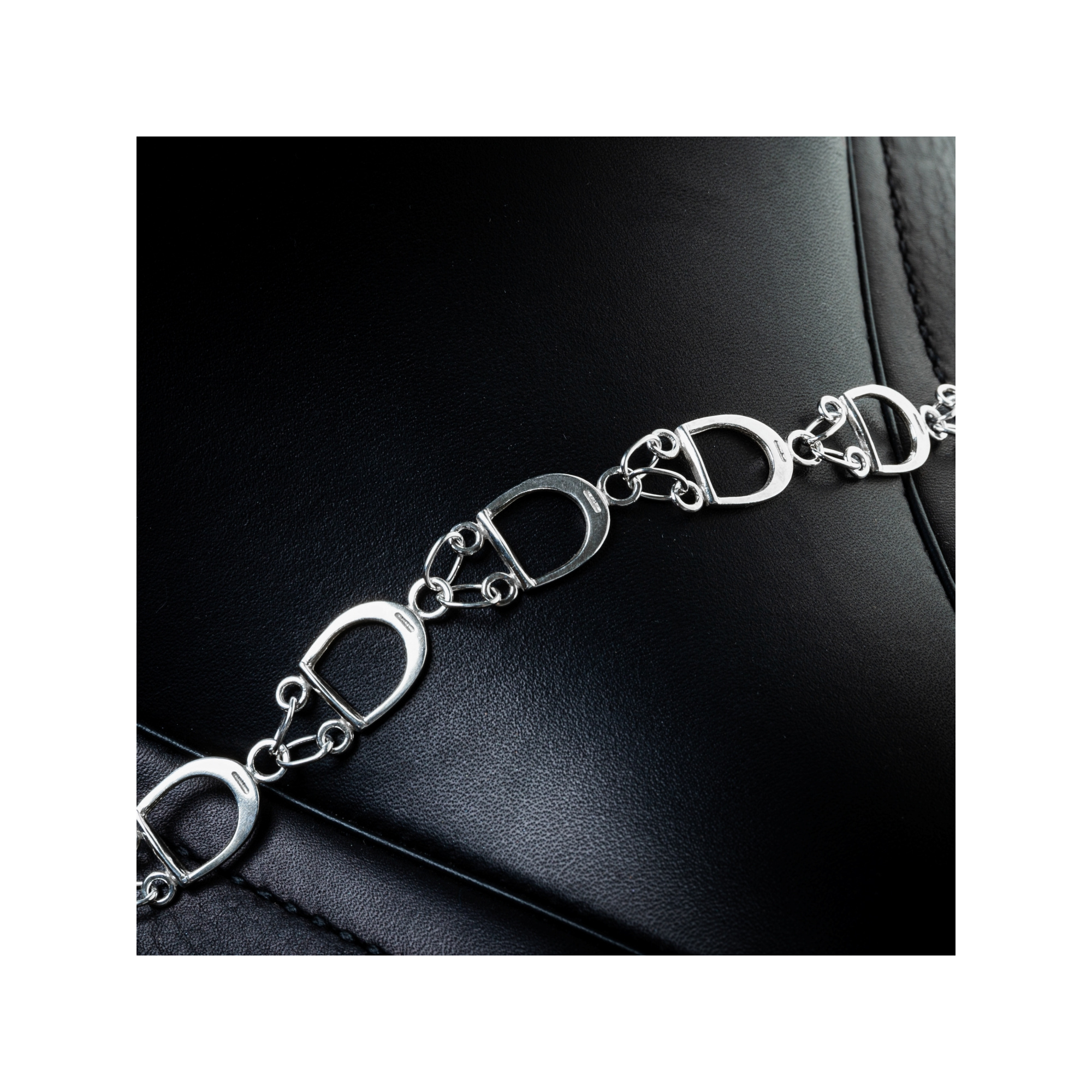 Das Armband besteht aus Silber (925) und ist ein kleines, elegantes Accessoire mit Reitermotiv. Die Steigbügel sind mit kleinen Ringen miteinander verbunden, wodurch das Ganze äußerst stilvoll und edel aussieht. Das Armband ist sanft, unaufdringlich, nimmt aber Bezug auf das Reitthema, wodurch wir die Möglichkeit haben, den Reitsport in das alltägliche Styling einzubringen.