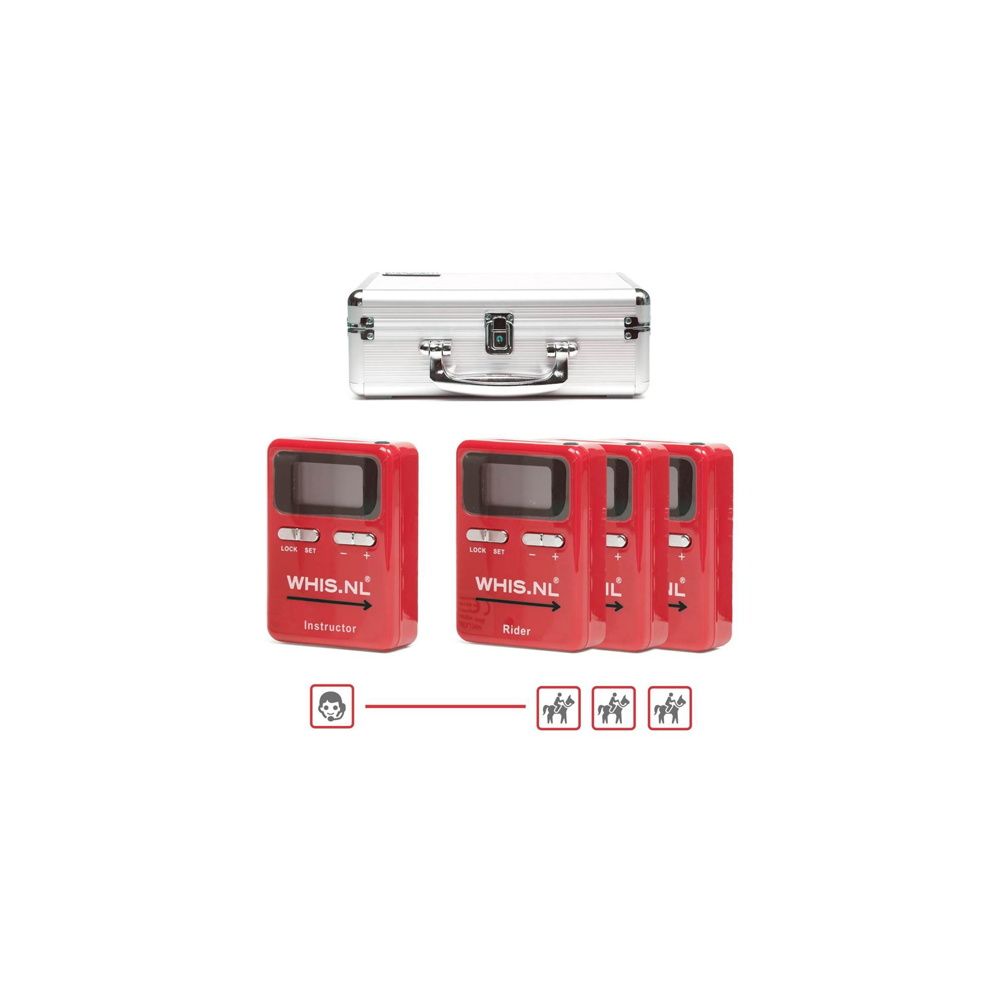 WHIS ist ein kabelloses System zur Kommunikation zwischen Trainer (Sender) und dem Trainierendem (Empfänger). Das WHIS System garantiert Klangklarheit und keine Verzögerungen im Bereich von bis zu 300 Metern.