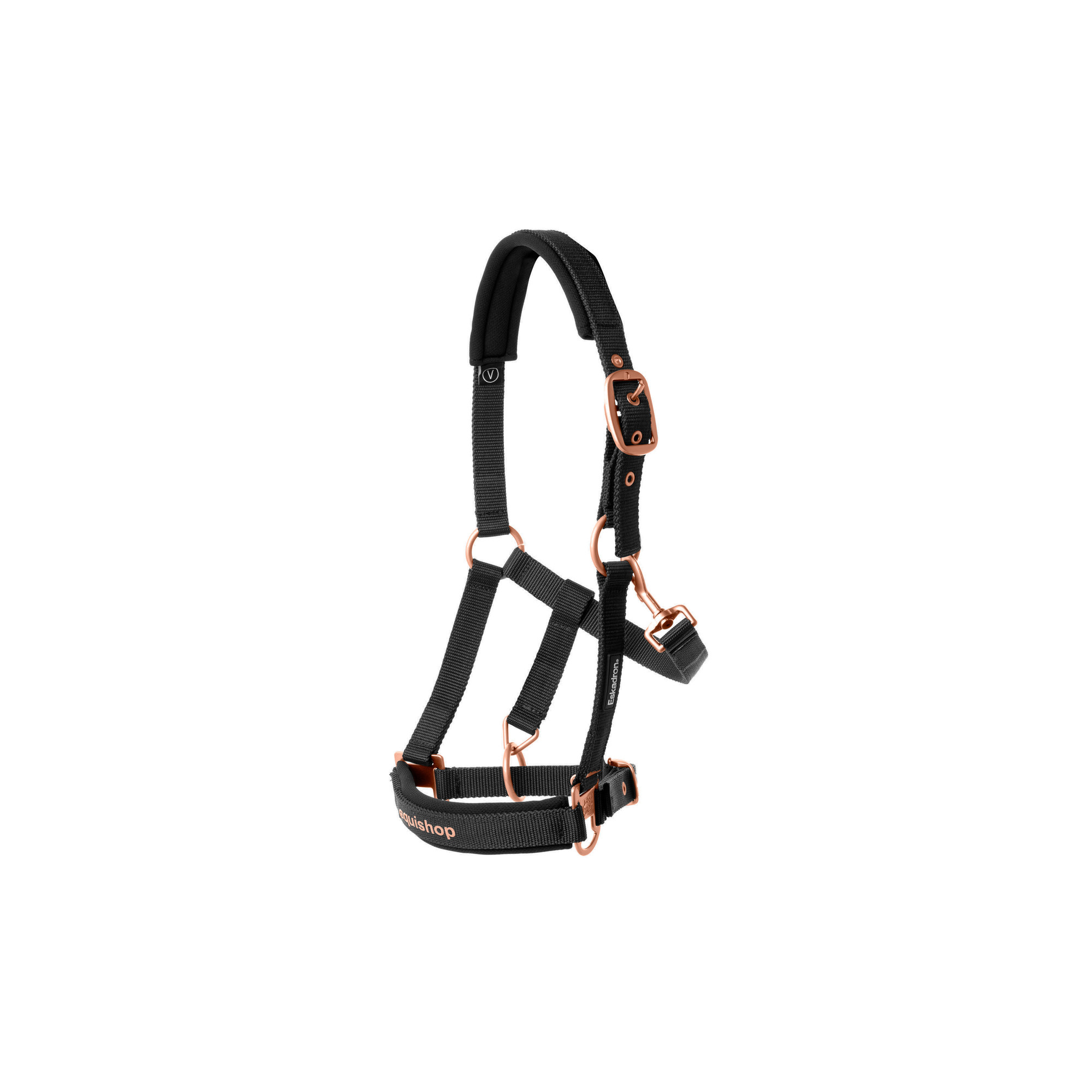 Das Halfter aus der Equishop Team by Eskadron Linie besteht aus einem sehr strapazierfähigen Band, das reißfest ist. Die Nasen- und Genickpartie sind mit einem Soft-Touch-Material verstärkt, das angenehm für das Pferd ist und ein Scheuern des Kopfes verhindert. Das Halfter hat haltbare Beschläge und Einstellung im Nasen- und Genickbereich. Das Equishop-Logo ist auf der Vorderseite platziert worden.