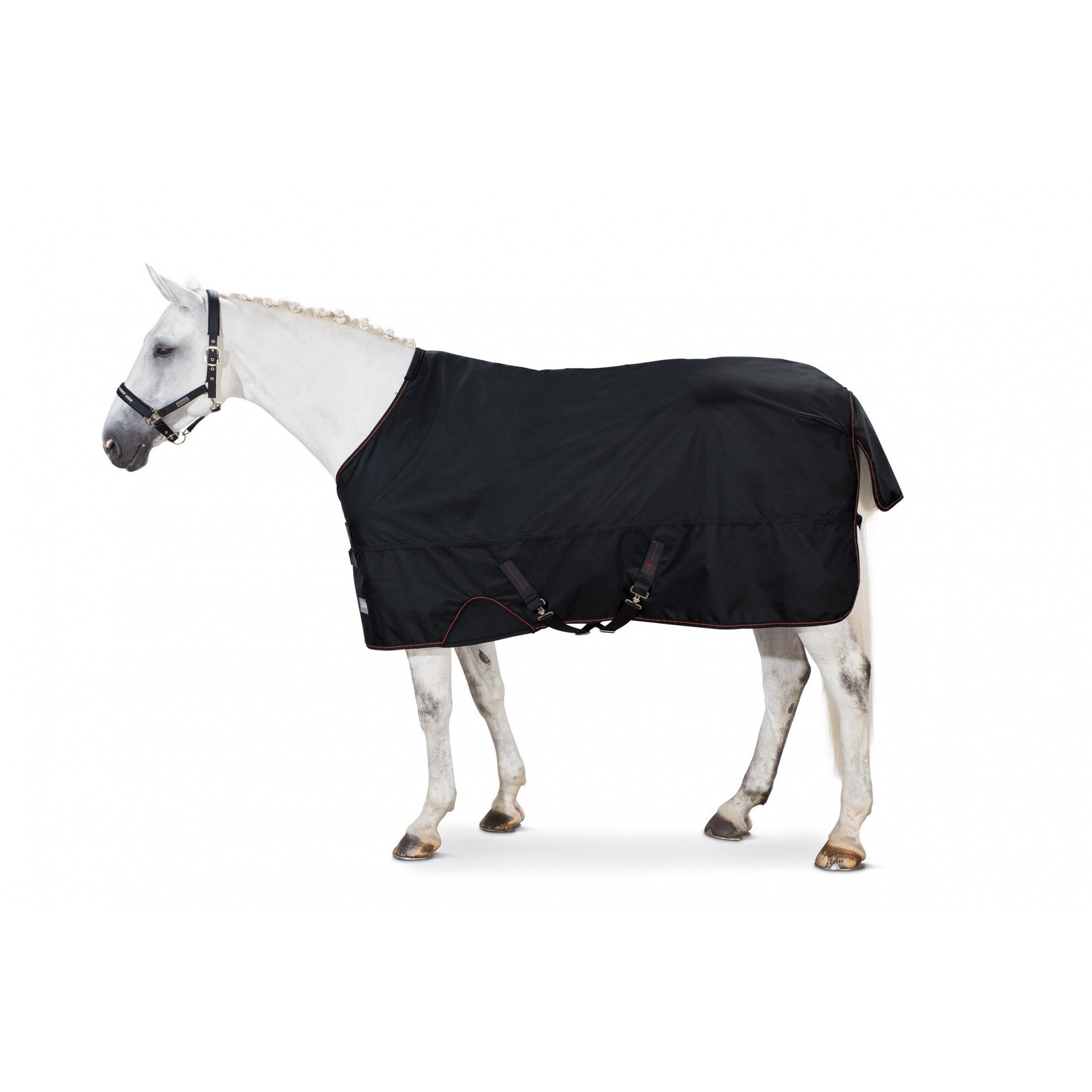 Eine Paddockdecke aus der klassischen Kollektion von Eskadron. Sie wurde aus hochwertigem, wasserfestem Stoff 1680 DEN, mit 150g Füllung gemacht. Sie ist sehr bequem und hat Einsätze aus einem elastischen Material auf Schulterhöhe des Pferdes. An der Vorderseite wird sie mit zwei Riemen befestigt, unter dem Bauch mit Kreuzriemen. Die Decke hat einen verlängerten Kragen und eine Schwanzklappe, die eine Hochhebung verhindert. Sie ist mit einem Außenrand, einem kleinen Band und einer großen Eskadron Inschrift an der Klappe geschmückt.