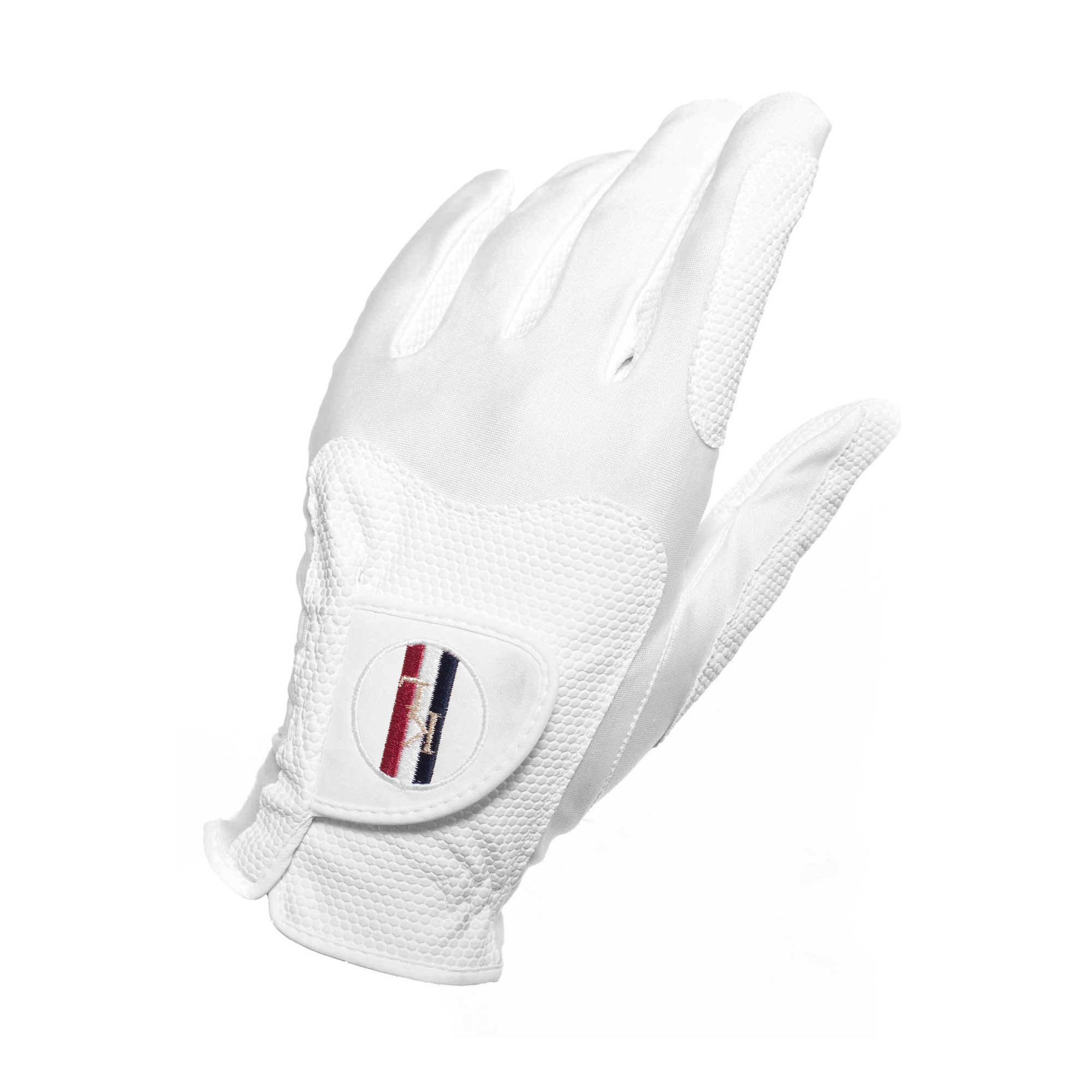 Kigsland Reithandschuhe in Weiß, für Reitturniere bestimmt. Sie bestehen aus leichtem und flexiblem Material, das eine gute Luftdurchlässigkeit sichert. Die Handschuhe sind mit einem breiten Klettverschluss und einer Verstärkung an der Handinnenseite ausgestattet, die für eine gute Haftung an den Zügeln sorgt. Außerdem wurde die Schließe mit einer großen Stickerei mit dem Kingsland-Logo versehen. Dieses Modell von Reithandschuhen ist perfekt für Reitwettbewerbe oder fürs tägliche Reiten.