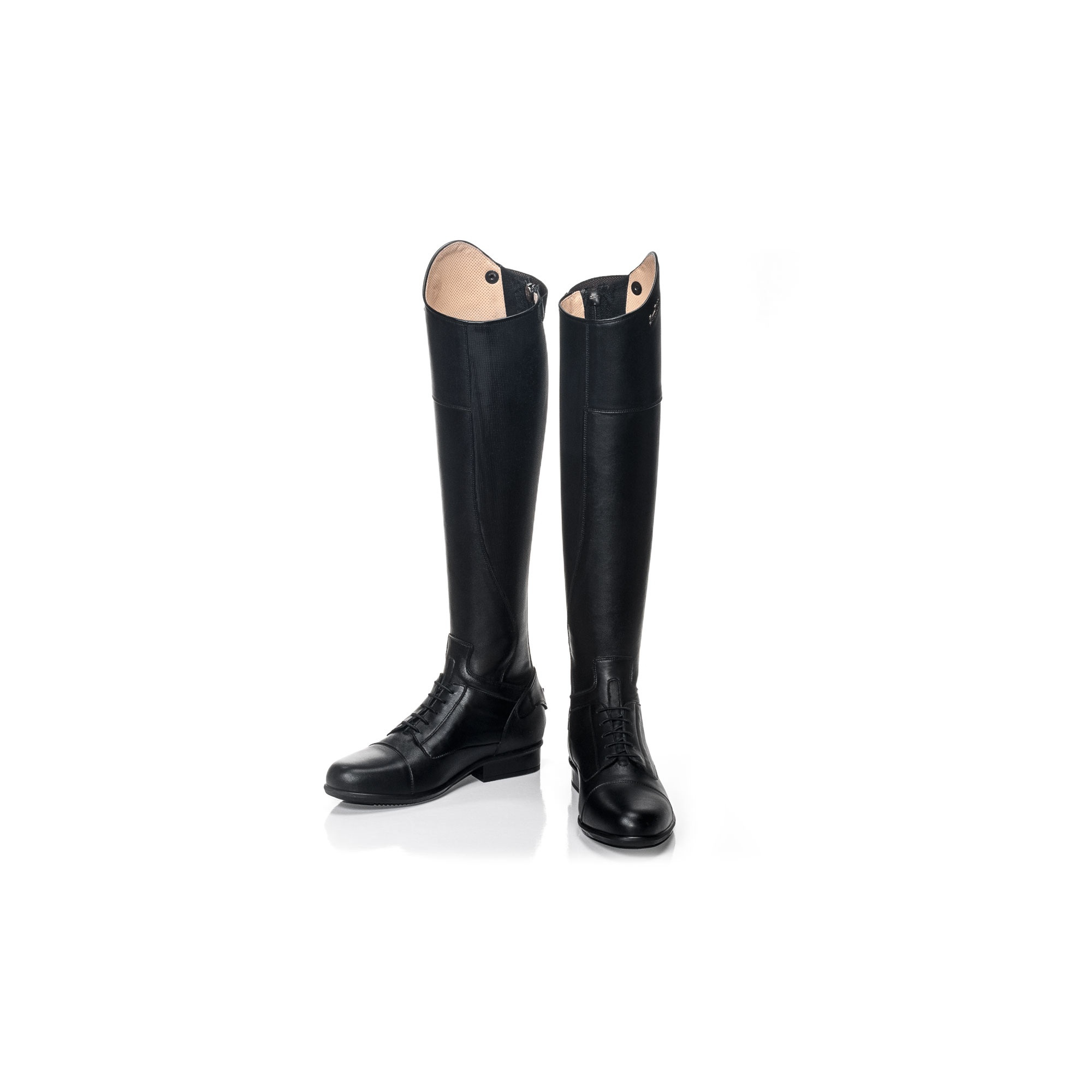 Ingress ist ein neues Modell der Reitschaftstiefel mit elastischen Schnürsenkeln, wodurch der Schuh die Höhe seines Spanns anpasst. Die Schuhe wurden aus Kalbsleder in der SG-Touch Technologie hergestellt, die für optimale Belüftung im Schuh sorgt und den Schweiß nach außen leitet. Die Sohle wurde von der italienischen Firma Vibram hergestellt. Sie zeichnet sich durch hohe Stoßdämpfung, Luftdurchlässigkeit im Schuh und eine antibakterielle Schicht aus. Der Fersenteil wurde zusätzlich mit einer Carbonfaserschicht verstärkt. Die Innenschicht der Einlage wurde in der ProComf Technologie hergestellt, die sich durch Sanftheit beim Hautkontakt auszeichnet. Das Ingress Modell hat einen bedeckten Reißverschluss an der Rückseite und der untere Teil ist durch eine zusätzliche Materialschicht geschützt, die ihn vor Beschädigung beim Sporentragen schützt. Die Schuhe haben auch einen elastischen Einsatz auf der Rückseite, der eine optimale Anpassung an die anatomische Wadenform gewährleistet (das Material gibt 2 cm nach). Vor der Größewahl empfehlen wir den Wadenumfang in der Reithose und in Socken zu messen. Wenn Sie Zweifel an der Größenauswahl haben (Ihre Größe liegt "dazwischen"), empfehlen wir ihnen einen größeren Schuh zu wählen.