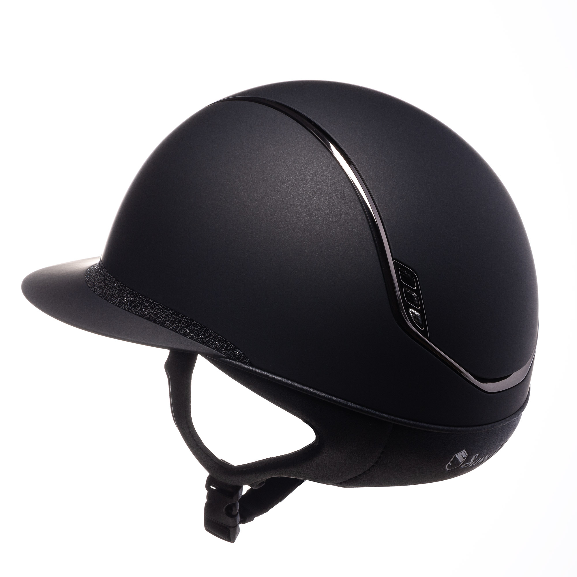 Der Miss Shield Shadowmatt 2.0 Reithelm wurde von der Marke Samshield nach vier Jahren intensiver Forschung entwickelt, um den höchsten Ansprüchen von Reitern gerecht zu werden und eine perfekte Passform zu bieten. Dank eines innovativen Belüftungssystems und modernster Materialien erfüllt dieser Helm alle Sicherheitsstandards und bietet ein sicheres Reiten. Er verfügt über ein Schild und ein Frontband aus Crystal Fabric in Schwarz. Der Rand ist aus schwarzem Chrom.