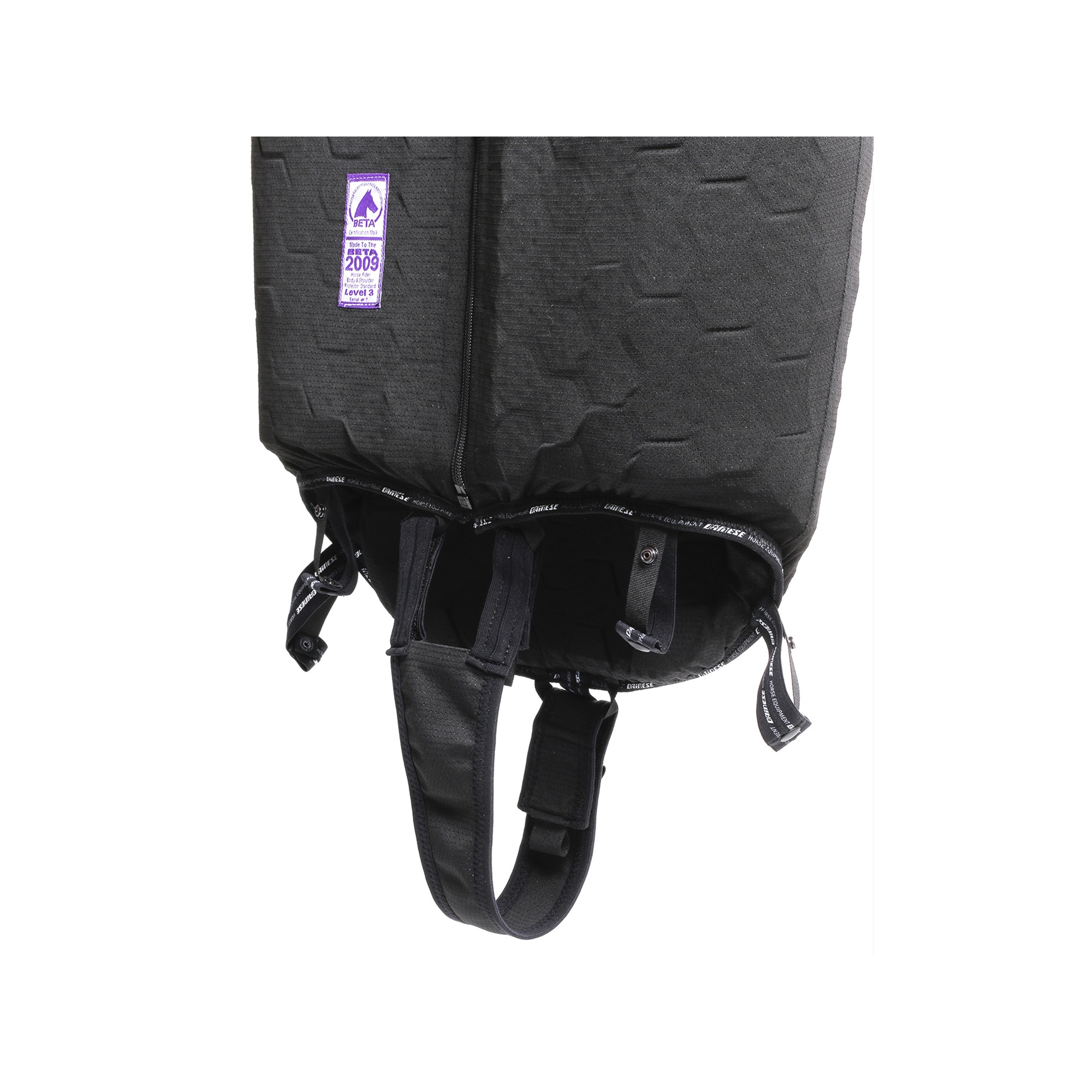 Das neueste Modell der Dainese Reitschutzweste BALIOS BETA 3 ADJ ist der Nachfolger des sehr beliebten Modells Balios 3. Die Weste Balios 3 BETA ADJ ist noch leichter, bequemer und noch mehr atmungsaktiver. In den Reitschutzwesten verwendet Dainese die von ihm entwickelte Flexagon Technologie, die eine neue Qualität in die Konstruktion von Schutzkleidung einführt. Die Westen sind mit speziellen, stoßfesten, kubusförmigen Platten gefüllt, die auf der Basis der Crash Absorb® Technologie von Dainese im Extremsportbereich hergestellt werden. Dank der kubusförmigen Platten ist Balios 3 BETA ADJ die einzige Reitschutzweste auf dem Markt, deren Füllung sich in beliebige Richtungen bewegen und sich daher perfekt dem anatomischen Brustkorbbau des Reiters anpassen kann. Die Balios Weste zeichnet sich durch Ergonomie und Bewegungsfreiheit des Reiters aus und bietet gleichzeitig einen maximalen Schutz. Das Unternehmen Dainese hat bei der Entwicklung der Balios Weste die strengen europäischen und britischen Zertifizierungsanforderungen CE EN 13158: 2009 und BETA 2009 Level 3 (Zertifikat des Britischen Reitverbandes) erfüllt. Das neue Modell der Balios Weste wurde mit einem Gurt ausgestattet, der es ermöglicht, die Weste in den unteren Teilen des Körpers zu befestigen und verhindert, dass sich die Weste beim Reiten nach oben bewegt.