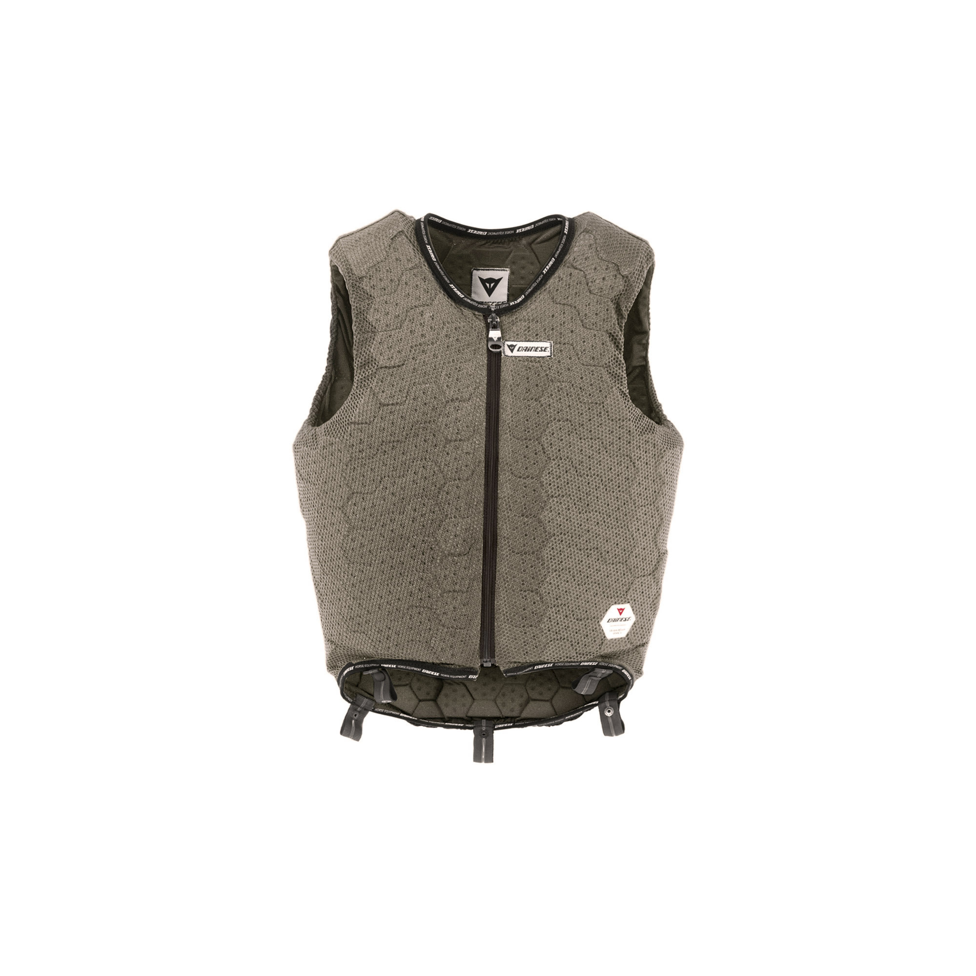 Die innovative Schutzweste ist für den alle Reitsportarten gedacht. Sie zeichnet sich durch eine spezielle Konstruktion des Schutzmaterials in wabenähnlicher Form aus. Diese Anordnung garantiert ein Verschieben und entsprechendes Drehen des Füllmaterials. Das Schutzmaterial in der Weste absorbiert die Aufprallkraft. Er besteht aus wasserabweisendem Nitrilgummi, der dank Perforation eine gute Belüftung des Körpers ermöglicht. Die speziellen Schlaufen, die sich im unteren Teil der Weste befinden, ermöglichen die Weste an der Hose zu befestigen, wodurch die Weste beim Reiten in der optimalen Position bleibt.