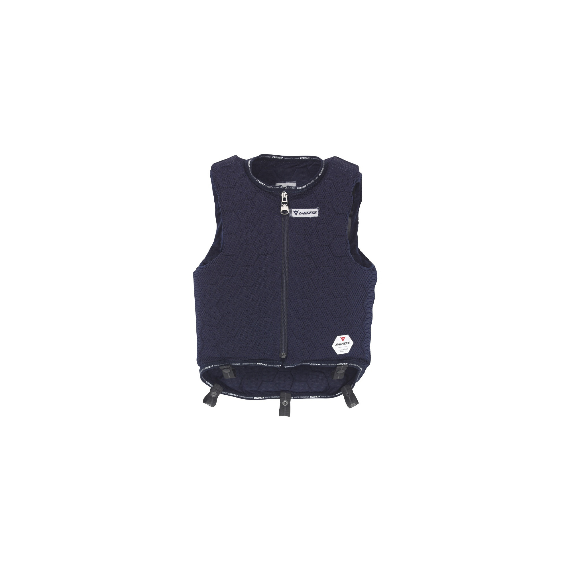 Die innovative Schutzweste ist für den alle Reitsportarten gedacht. Sie zeichnet sich durch eine spezielle Konstruktion des Schutzmaterials in wabenähnlicher Form aus. Diese Anordnung garantiert ein Verschieben und entsprechendes Drehen des Füllmaterials. Das Schutzmaterial in der Weste absorbiert die Aufprallkraft. Er besteht aus wasserabweisendem Nitrilgummi, der dank Perforation eine gute Belüftung des Körpers ermöglicht. Die speziellen Schlaufen, die sich im unteren Teil der Weste befinden, ermöglichen die Weste an der Hose zu befestigen, wodurch die Weste beim Reiten in der optimalen Position bleibt.