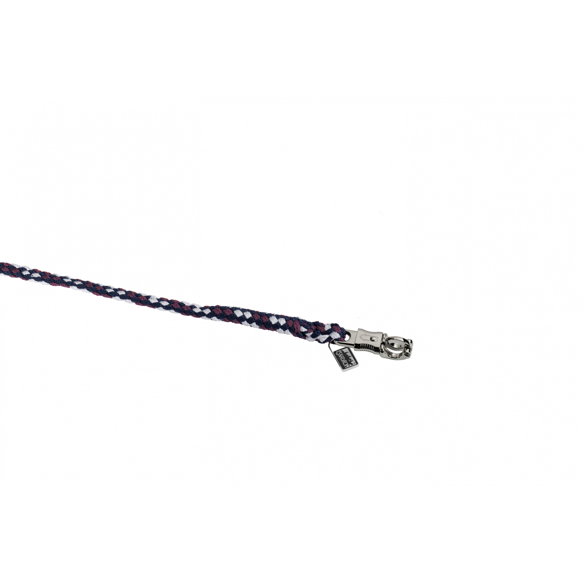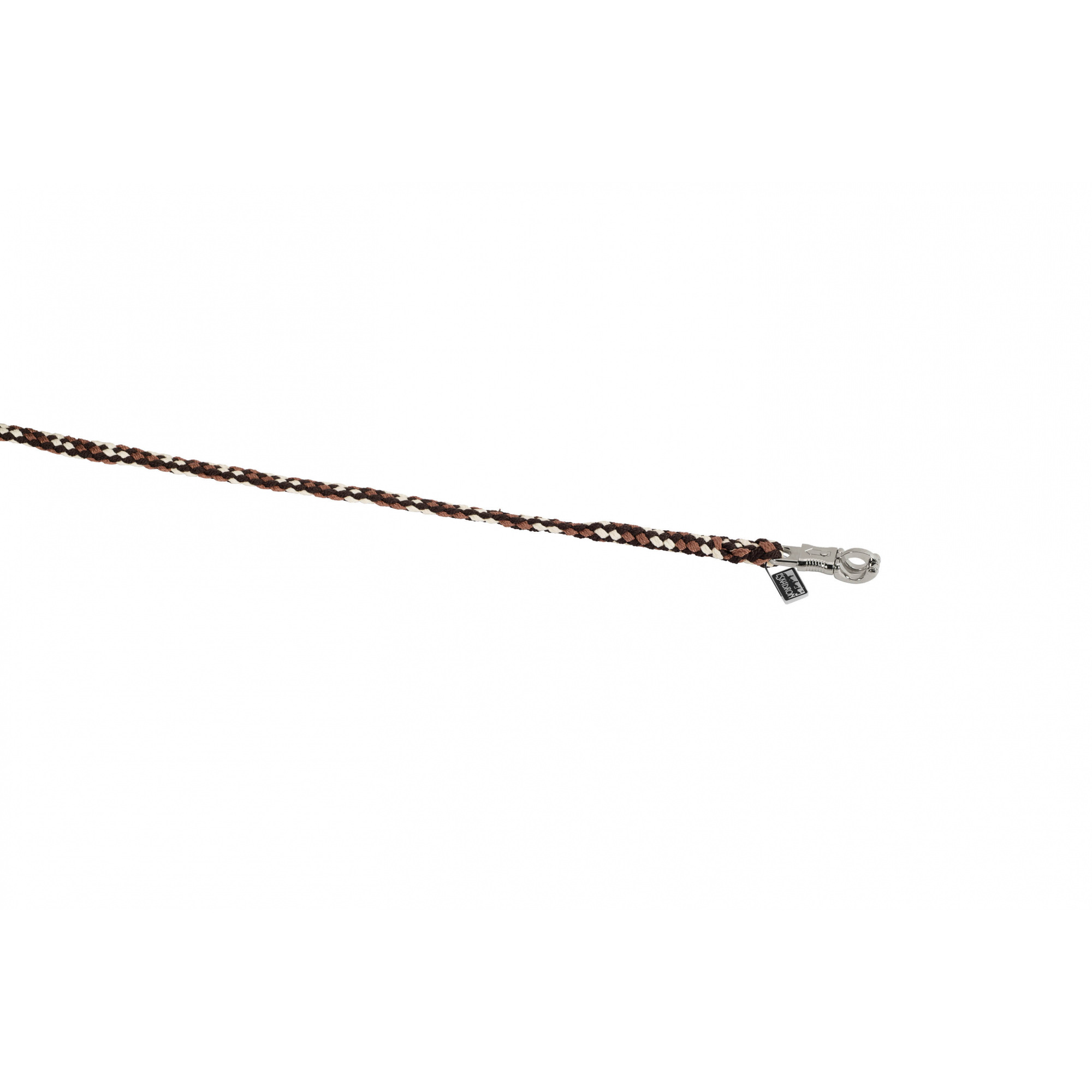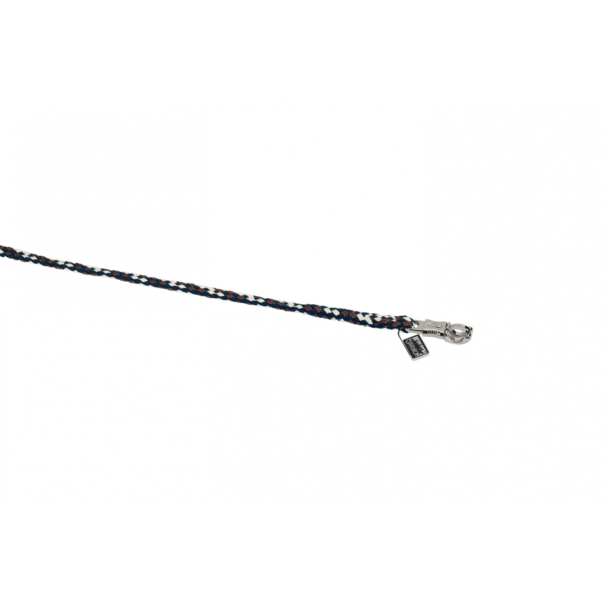 Der Anbinderiemen besteht aus hochwertigen Materialien. Er hat einen "sicheren" Karabiner aus vernickeltem Metall. Er wurde aus reißfesten Polypropylenseilen gewebt.