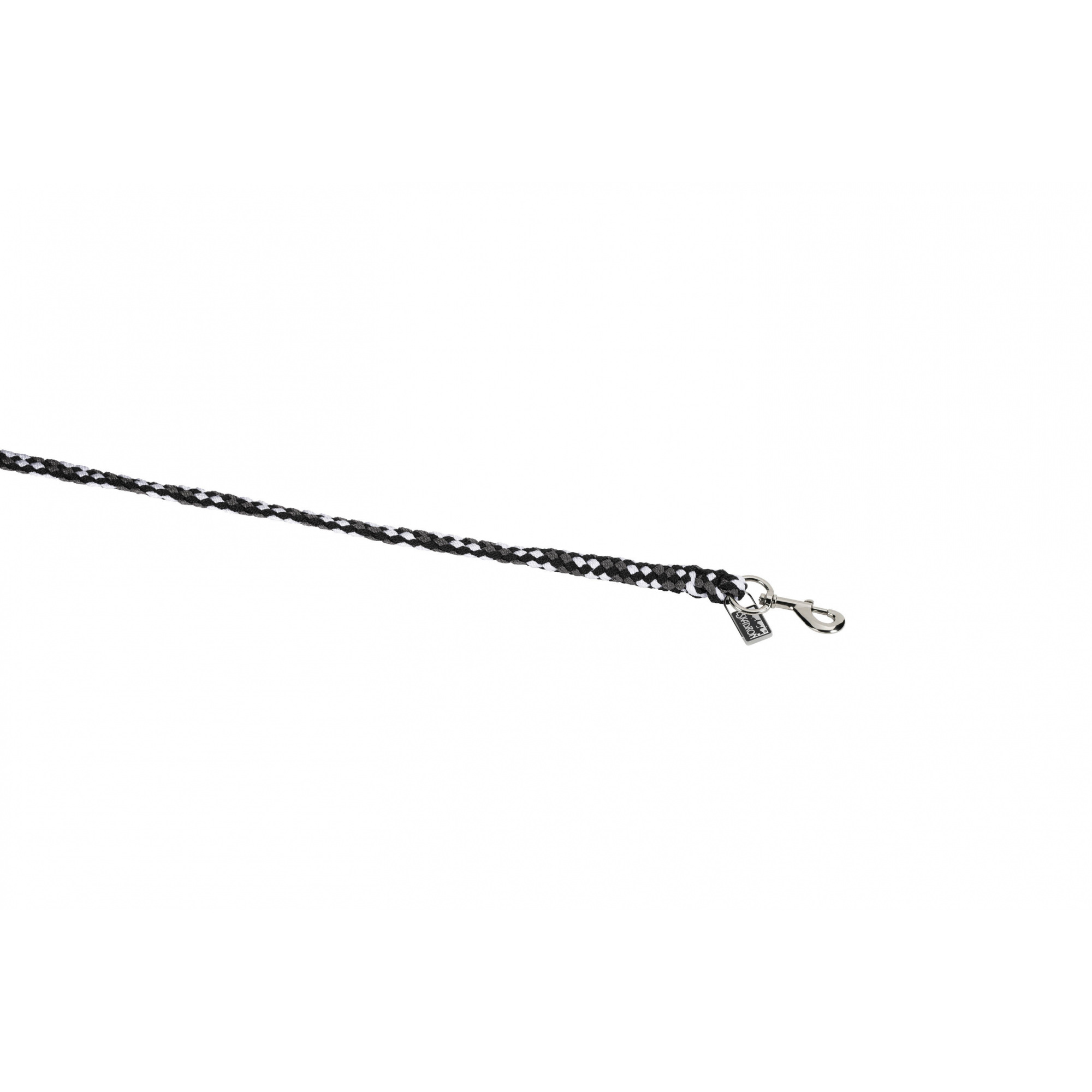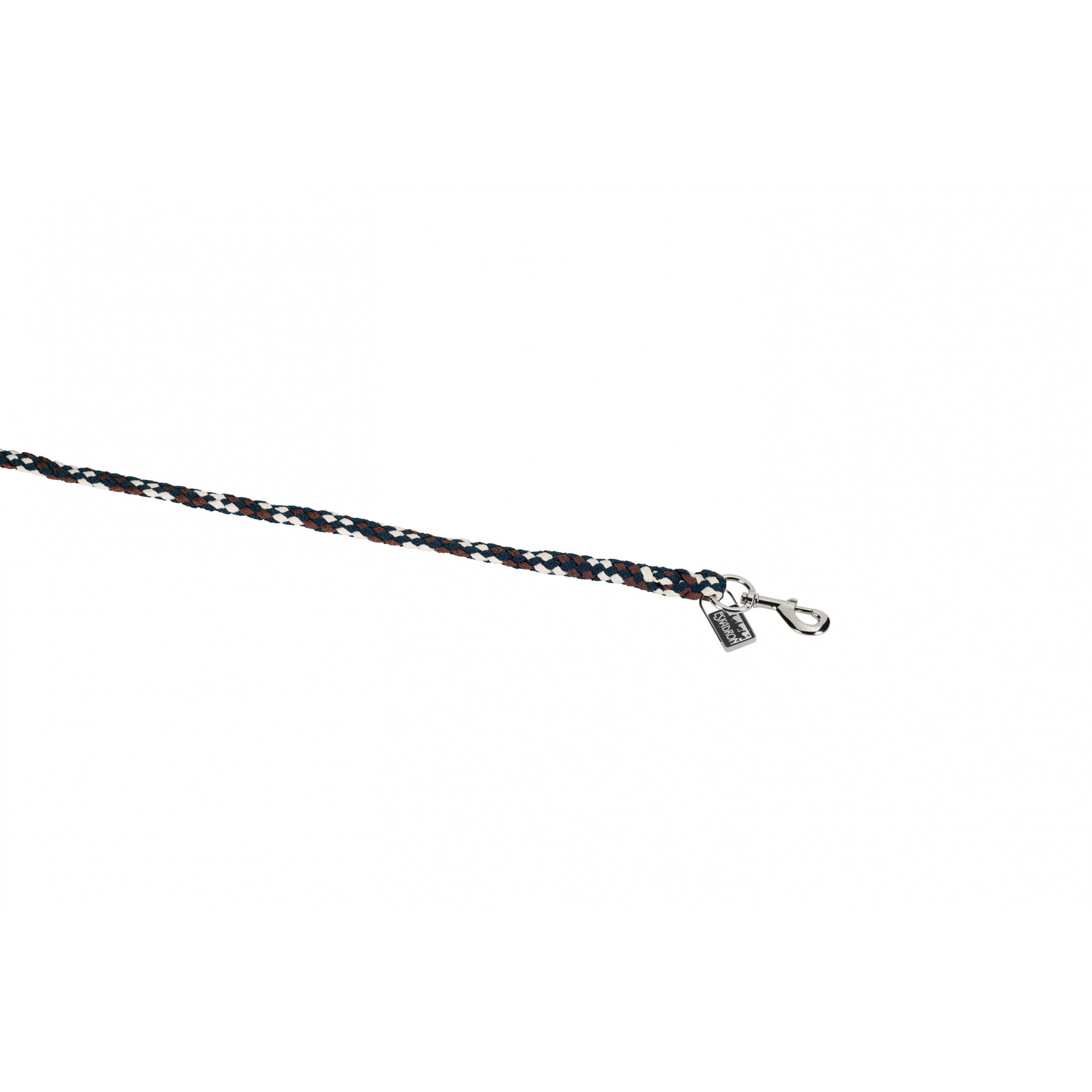Der Anbinderiemen besteht aus hochwertigem Polypropylen-Seil. Er ist dick geflochten und reißfest. Er ist mit einem klassischen Drehkarabiner ausgestattet. Der Karabiner ist aus vernickeltem Metall. Er hat eine dekorative Plakette mit dem Eskadron-Logo. Er ist in vielen Farben erhältlich.