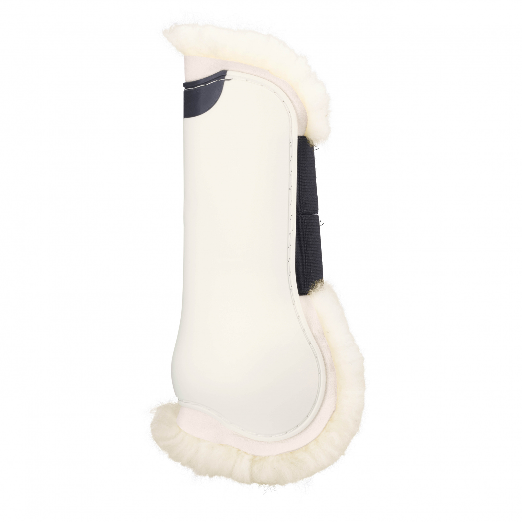 Tendon boots for horses from Eskadron. The boots are made of high-quality material, which is durable and resistant to hits, which is why they protect the horse's legs from sudden impacts and injuries. What is more, on the inner side, they are softly lined with white fur, which helps protect the horse from chafing. Additionally, the boots are fastened with two big velcros, which keep them from shifting. The product is decorated with a big plate with Eskadron's logo on the fastening.