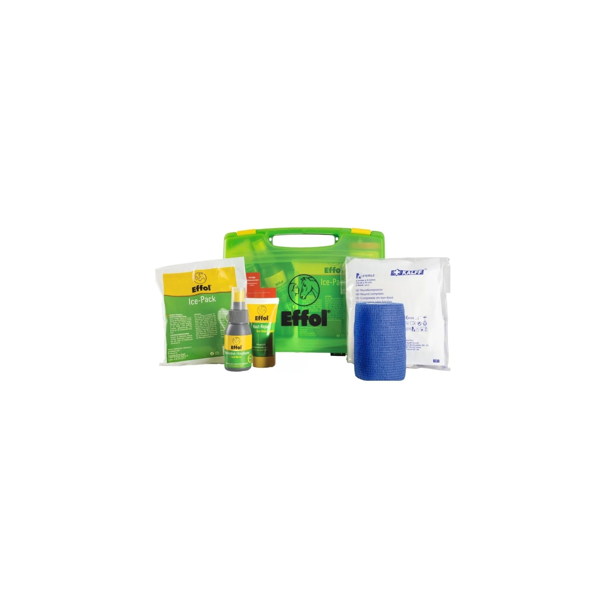 This Effol stable first aid kit contains a full set of products needed to provide first aid in case of emergencies.
