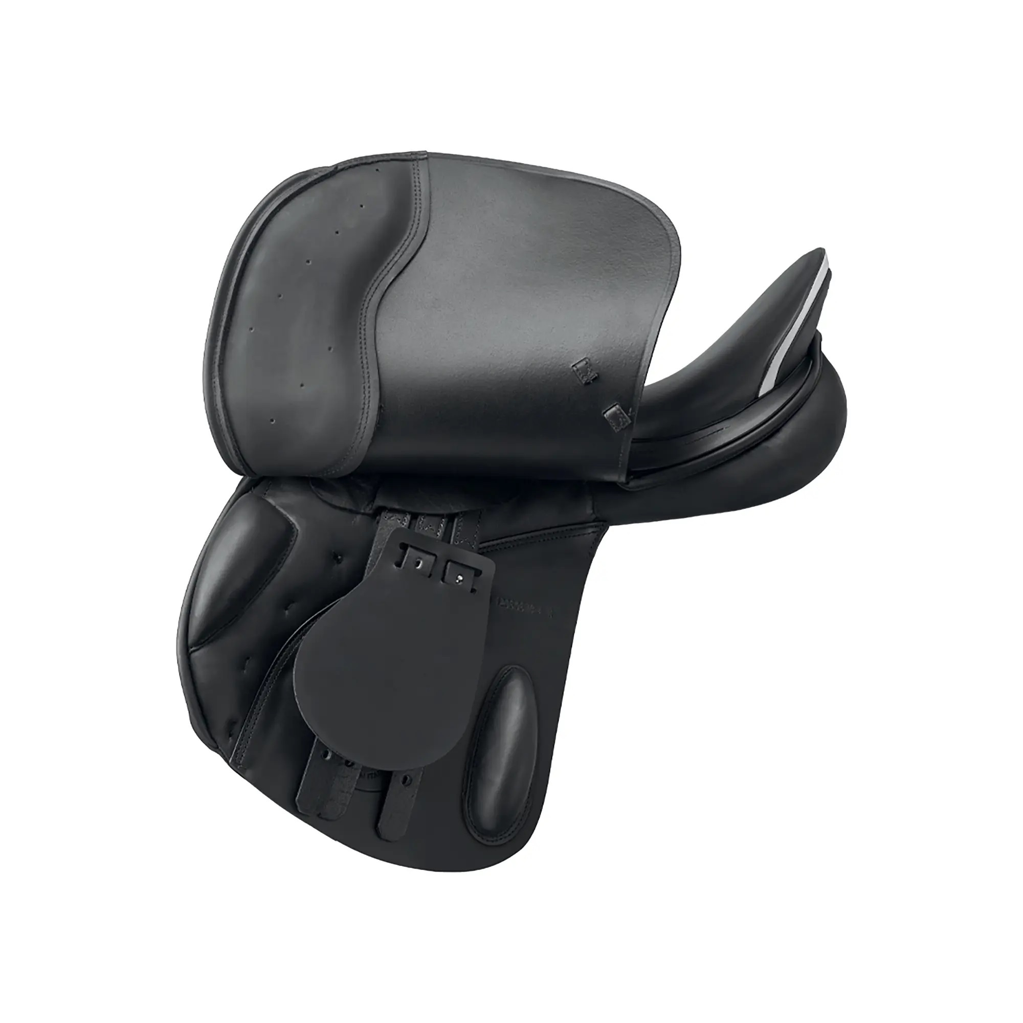 A versatile saddle that is extremely comfortable for the rider thanks to its new seat, which is now even softer. Thanks to the changes made to its tree, the saddle has a narrower twist and an improved “close contact” effect. Deep seat, round cantle and large blocks ensure maximum safety for the rider. Two versions are available: VS with large front blocks or anatomically shaped (“banana-shaped”) front blocks and large back blocks with Velcro (Velcro only on back blocks). VSS with large front and back blocks and flaps’ projection +2cm or +4cm forward. Venezia is the model that offers the widest range of choices to help you find your right balance on your horse. It is available with standard panels for normal horse morphology, and with gusseted panels with stitching to suit horses that are thin, with very prominent withers and low hindquarters. In all versions the panels are integrated with the sweat flap.
