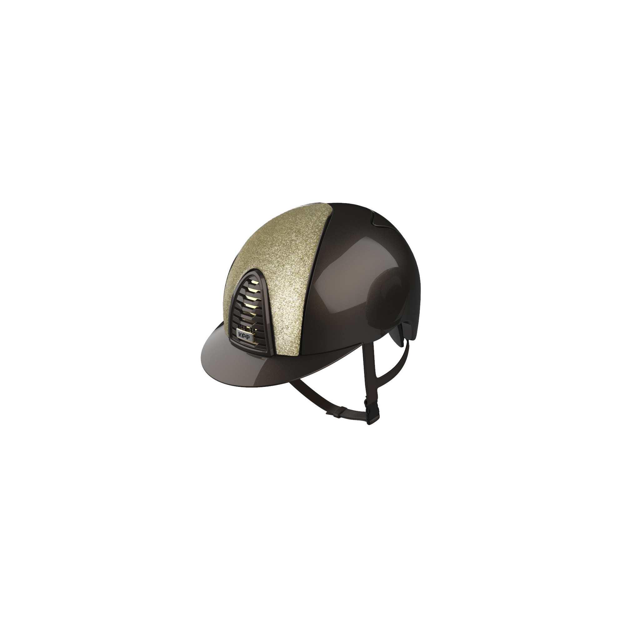 This model in brown colour is an embodiment of a classic equestrian style. The helmet is decorated with a shiny insert in gold colour that makes the helmet look very original. This combination fits every element of the riding attire creating a seamless ensemble.
