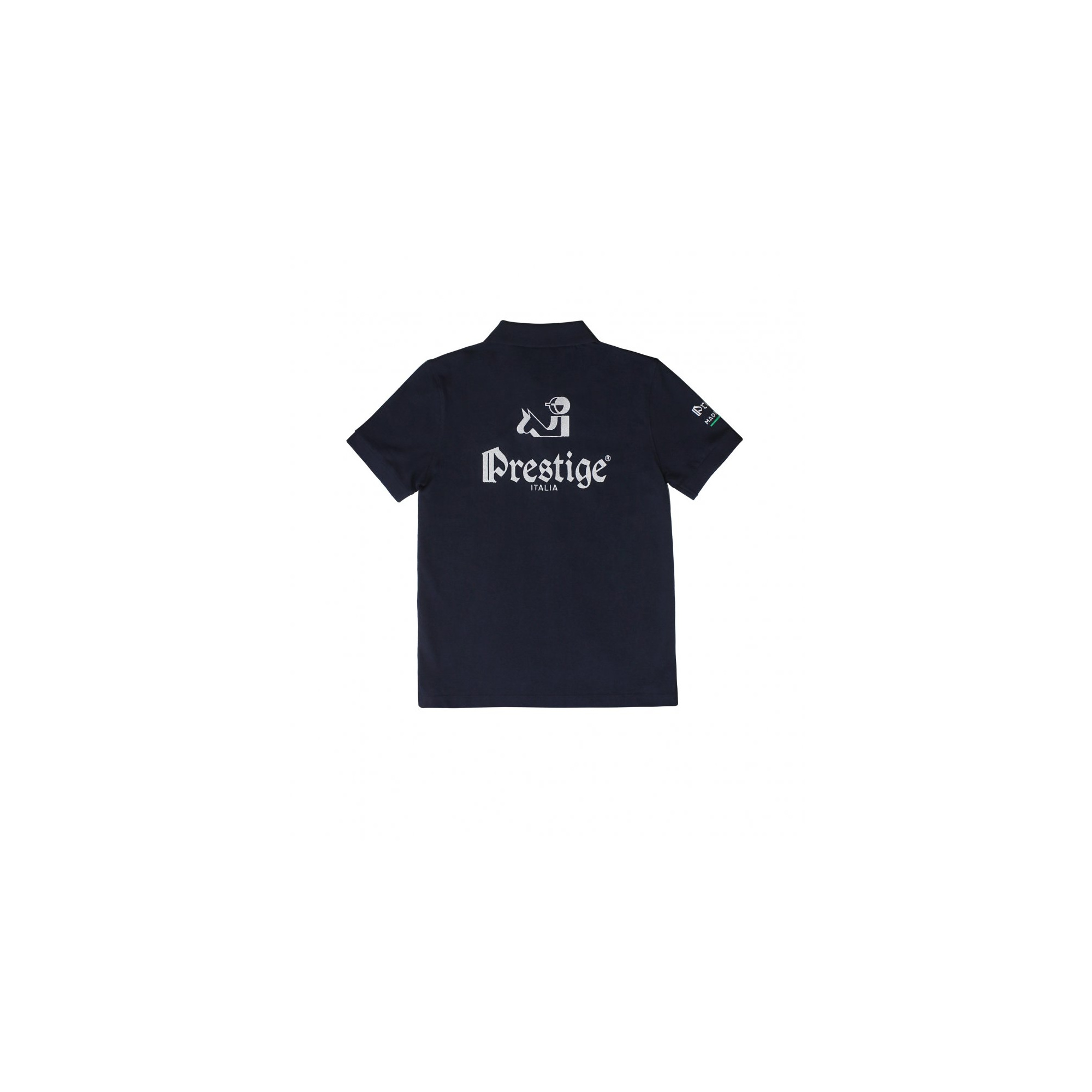 The t-shirt is made of breathable, comfortable material. The collar is fastened with buttons of the same color. The Prestige Italy logo is embroidered on the chest, sleeve and back of the polo.