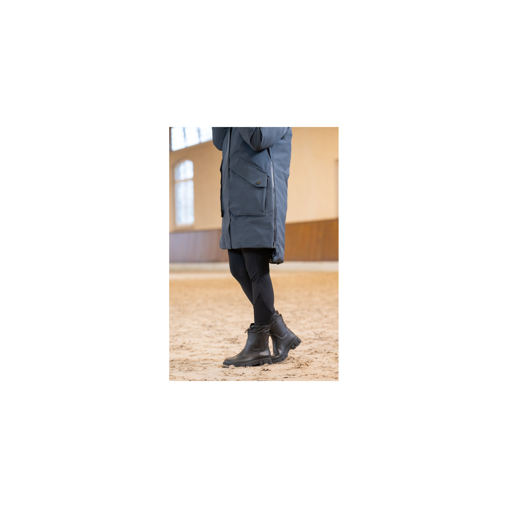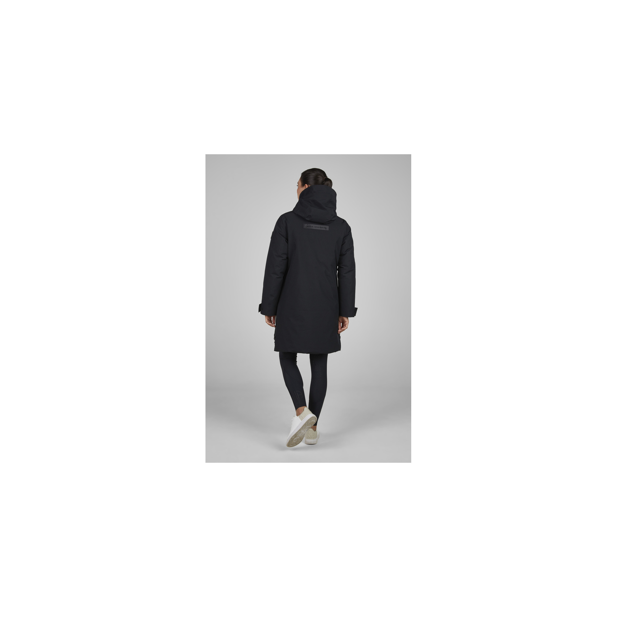 The tailored feminine cut highlights the silhouette, while the extended length effectively covers the legs and saddle area during riding. Special riding slits and inserts provide full freedom of movement in the saddle while maintaining complete rain protection. The Athleisure collection combines modern style with high functionality, making this coat ideal for both training sessions and everyday wear.