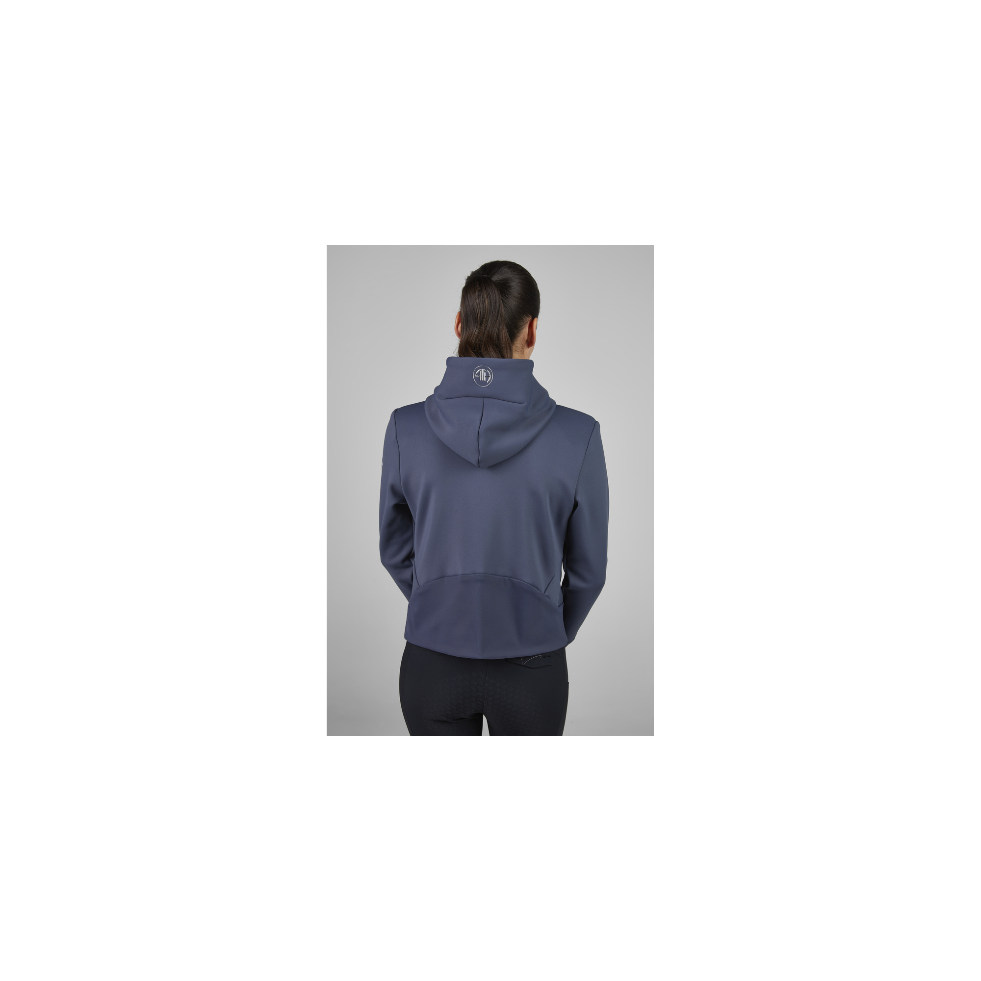 The hoodie features a discreet two-way zipper and side pockets with zippers, allowing you to safely store small essentials. Subtle silver Pikeur Athleisure prints on the sleeve, hem, and hood complete the look. This model is not only perfect for stable and riding activities but also works beautifully as part of casual, sporty outfits.