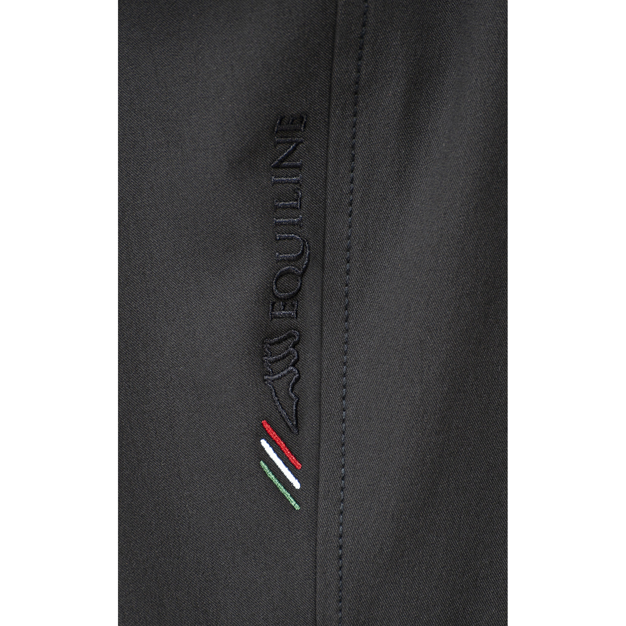 Pełnolejowe bryczesy męskie Ebro zostały wykonane z wysokiej jakości oddychającego materiału. Wyposażone zostały w pełny lej silikonowy. Na udzie z boku ozdobione zostały napisem Equiline i trzema paskami w kolorach włoskiej flagi. Na kolanie z boku umieszczono trójkątną wstawkę z czarnego materiału z guziczkiem. Bryczesy dostępne w kolorze białym w rozmiarach od 44 do 54.