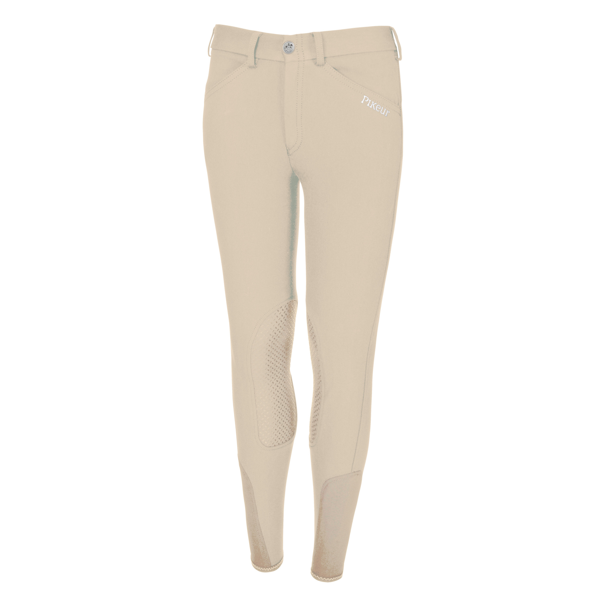 Pikeur lány lovaglónadrág. Nagyon jó minőségű elasztikus anyagból készültek, légáteresztőek és kellemesek a bőrnek. Ezen kívül szilikon térdfolttal is fel van szerelve, ami megvédi a térdeket a kidörzsölésektől. A felső részen két zseb található, a derekán övbujtatók találhatók. Ez a lovaglónadrág modell tökéletes mindennapi lovagláshoz vagy lóval való bármilyen edzésekhez. A zseb fölé dekoratívan egy Pikeur logóval ellátott applikáció került.