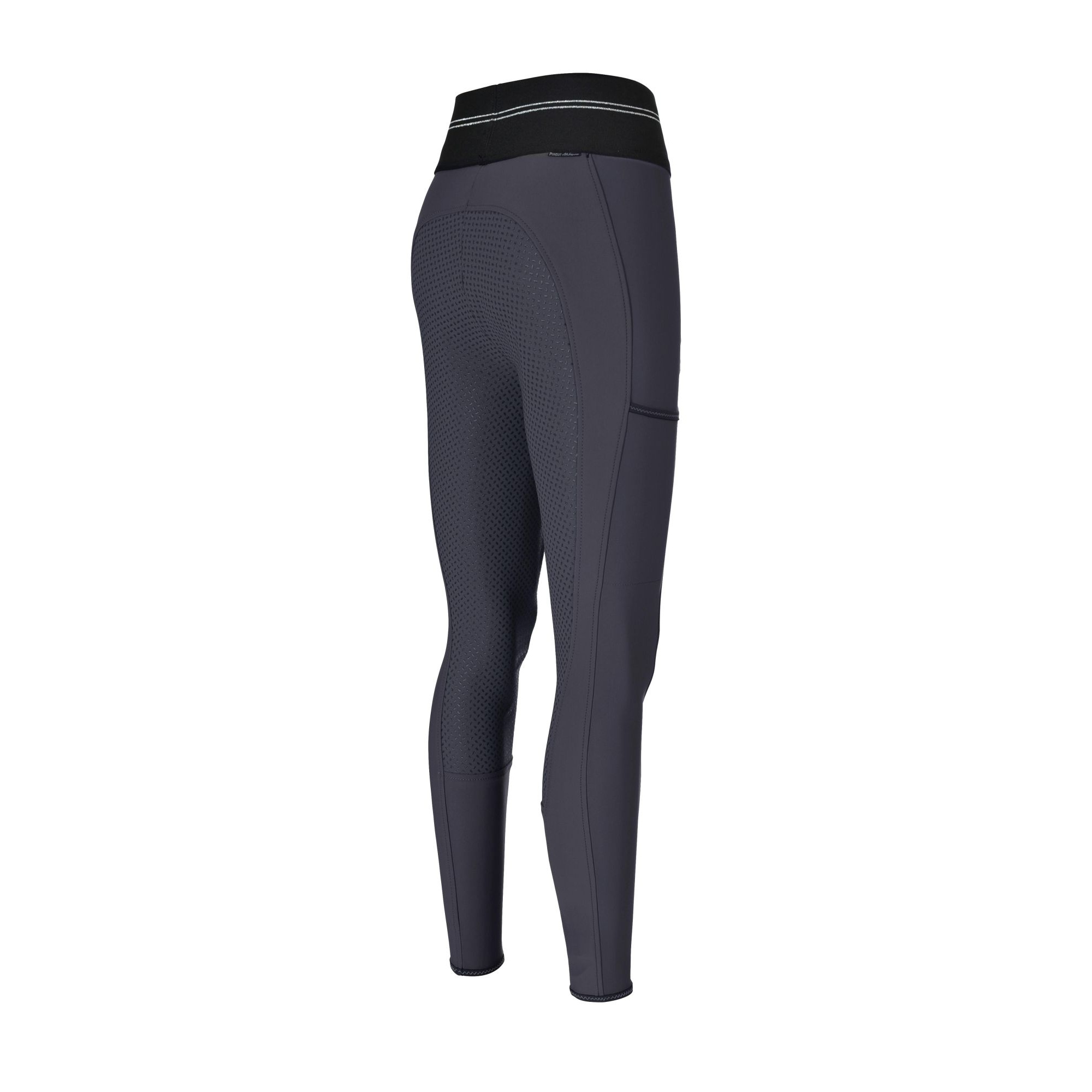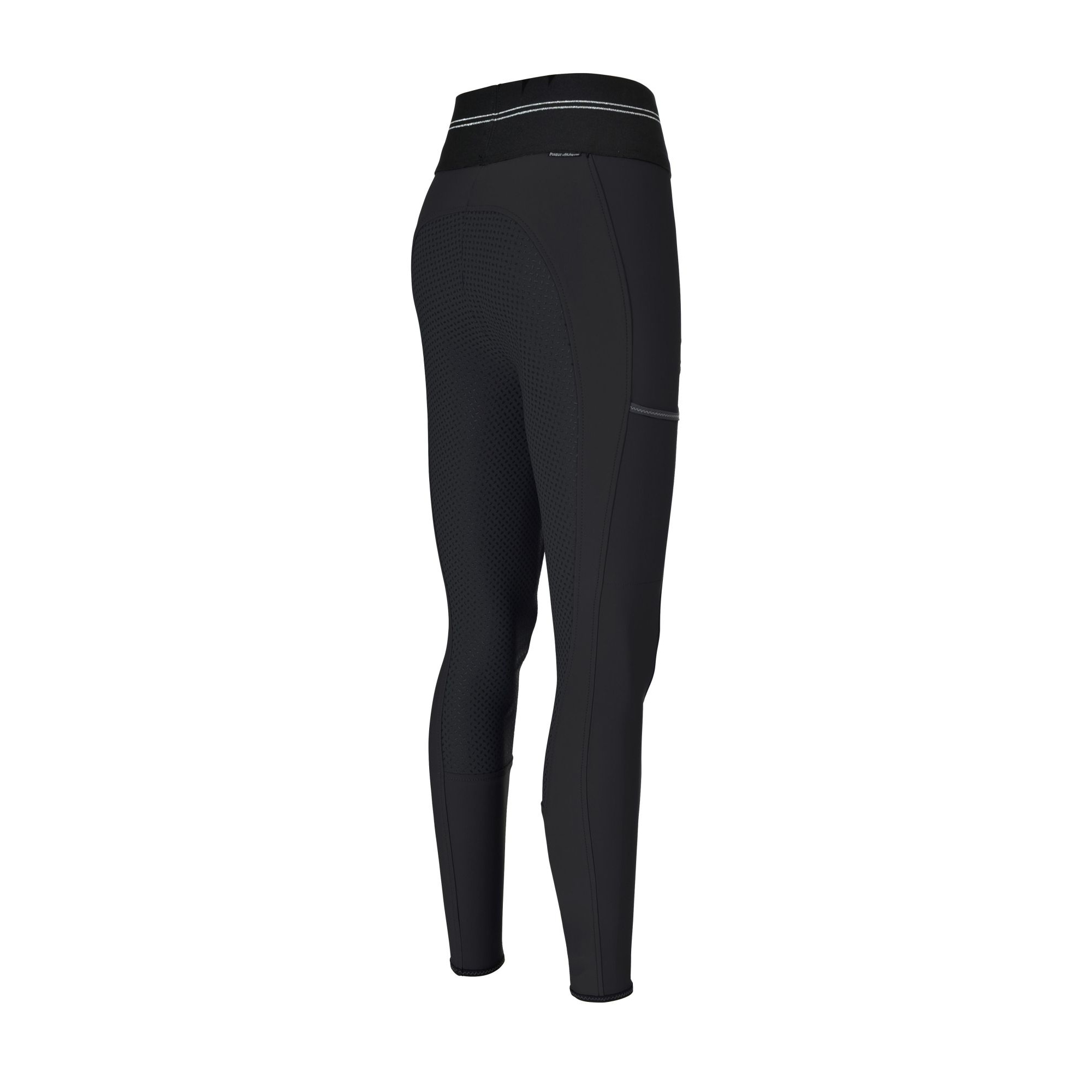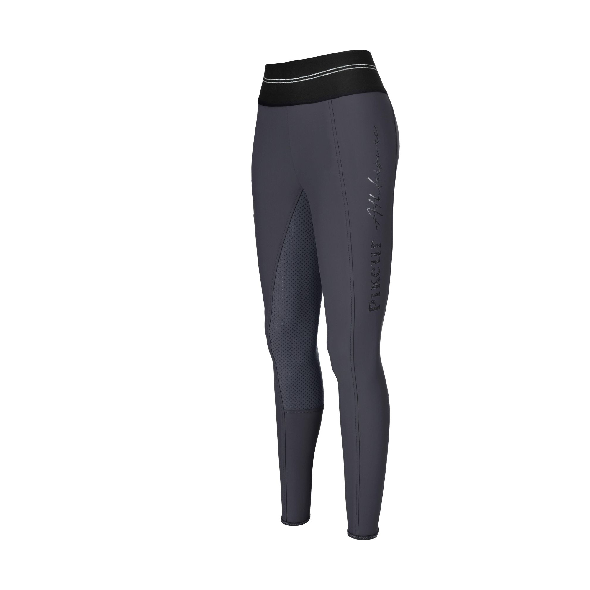 A díszítőelem a Pikeur Athleisure felirat a bal lárészen. Illetve van két vízszintes ezüst csík a derékrésznél.