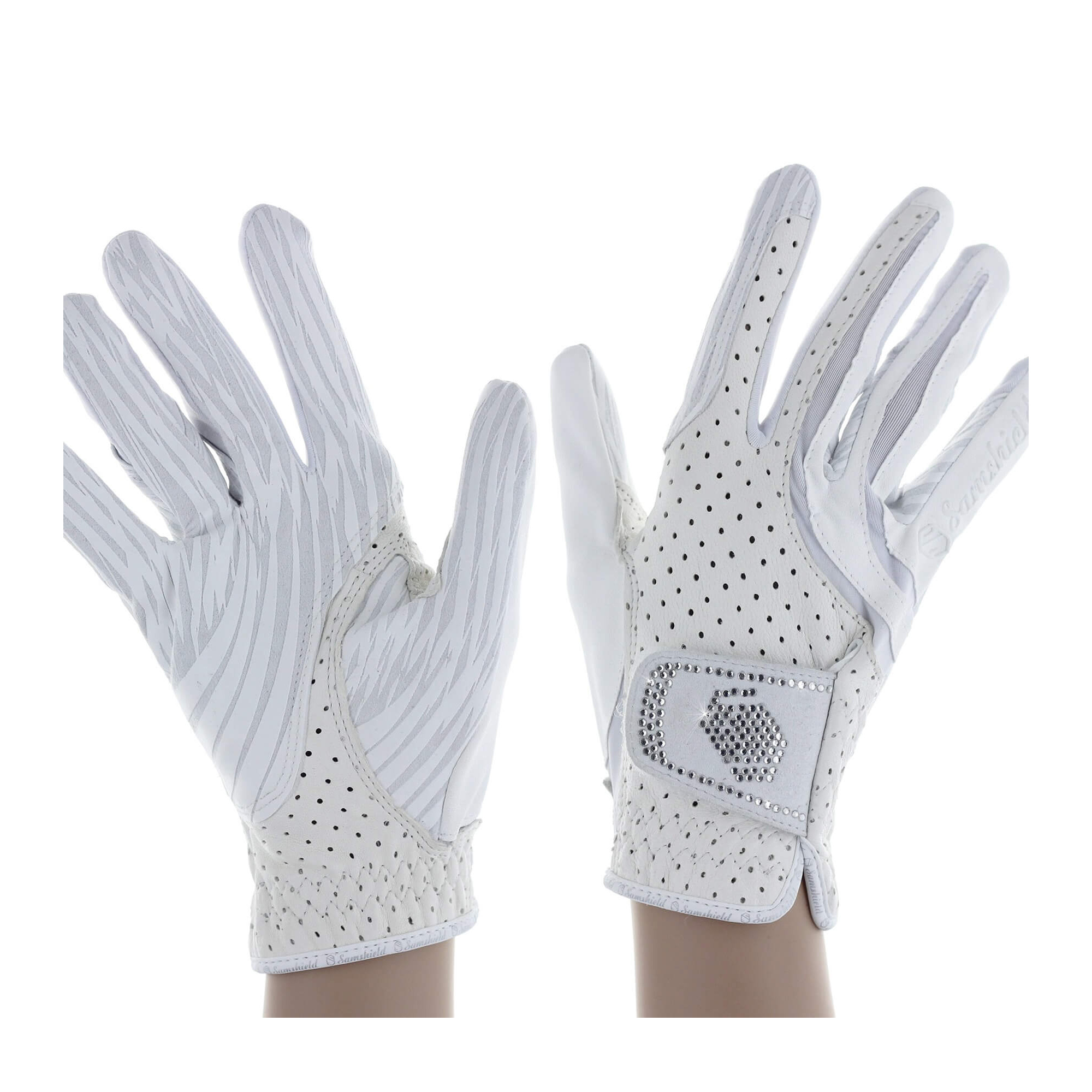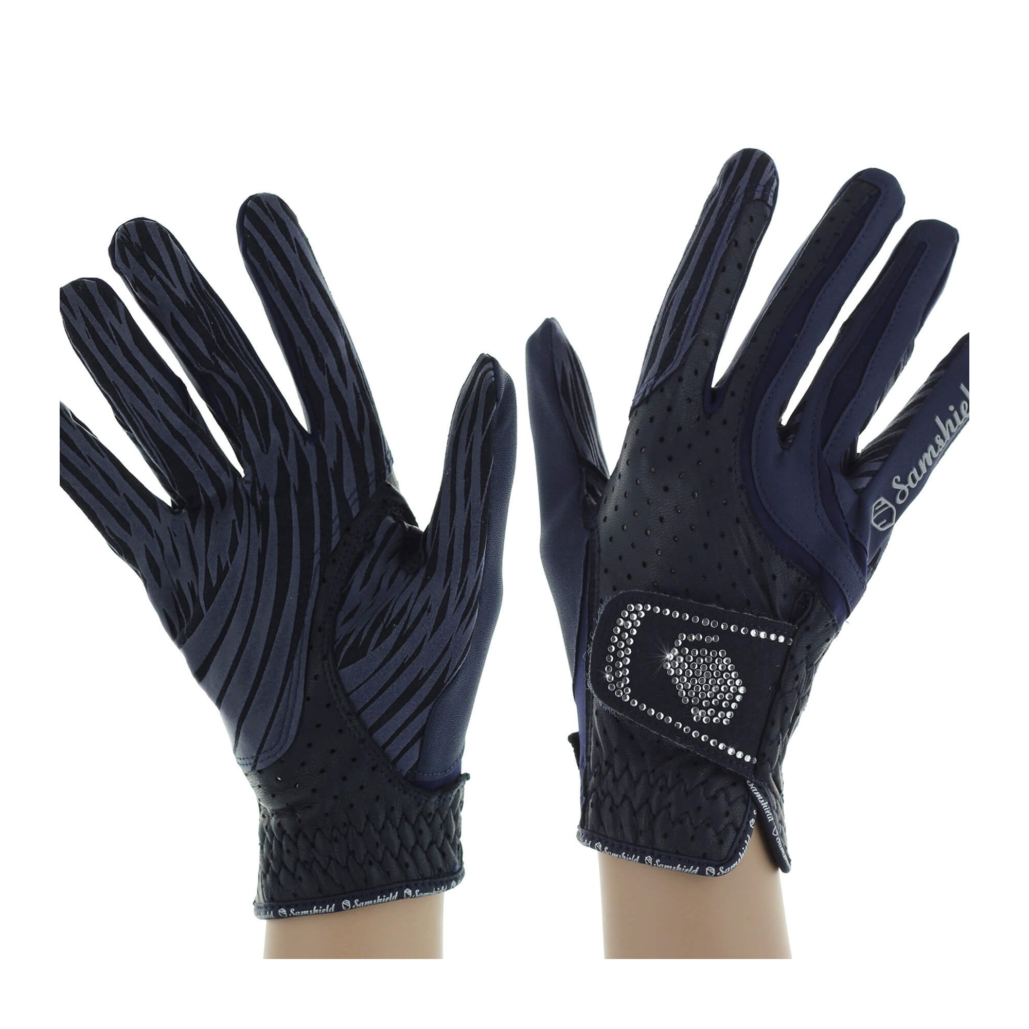 Niepowtarzalne rękawiczki Samshield ze 130 kamieniami od Swarovskiego na zapięciu.