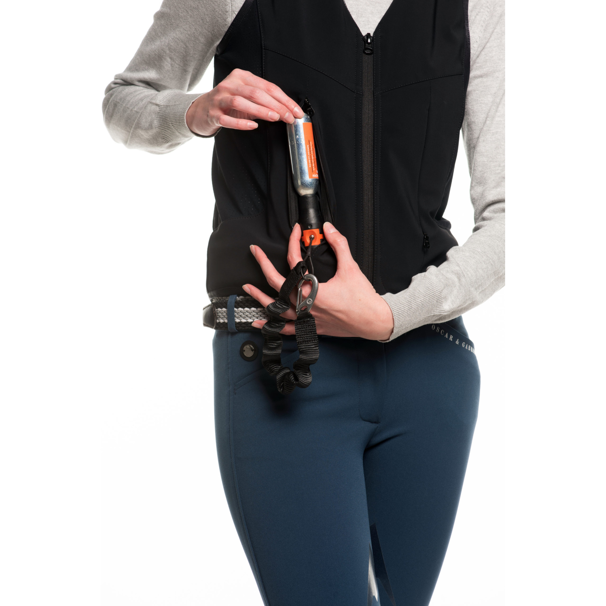 A Freejump Airbag mellény szíja nem rögzíthető közvetlenül a nyeregre! Ehhez egy speciális rögzítő pántot kell használni, amely a légzsák hatékony felfújásáért felelős.