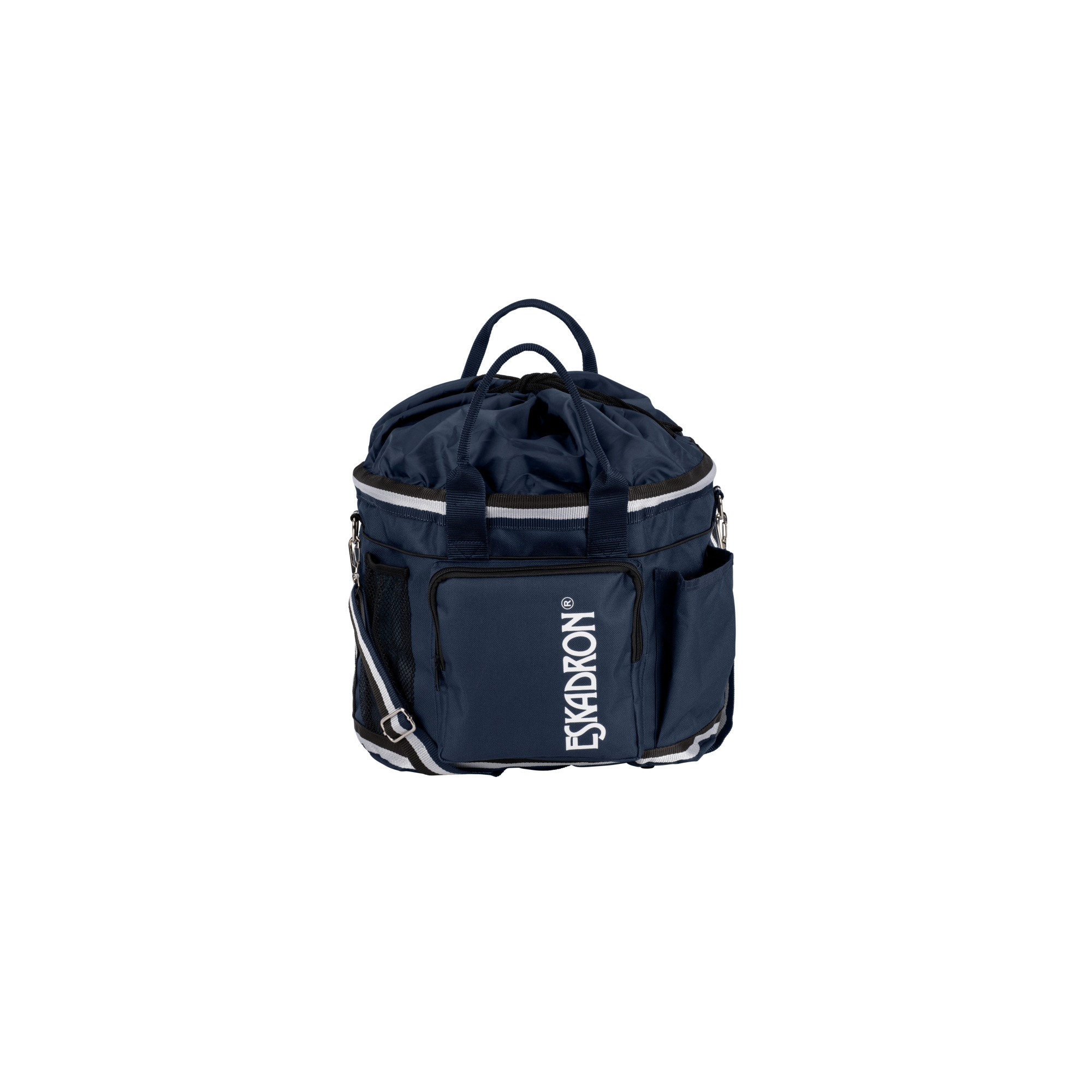 A kiegészítők számára készült táska erős anyagból megalkotva. Igen hasznos istállóban és versenyeken egyaránt. Rendkívül tágas, sok zseb van kívül-belül. A táska alja merevítést kapott, hogy stabilabb legyen. Meghúzott zsinórral lehet lezárni. Két fogantyúval és egy állítható vállpánttal van felszerelve a könnyebb cipelés érdekében. Az egyik külső zseb Eskadron logóval van ellátva. Több színváltozatban is kapható.