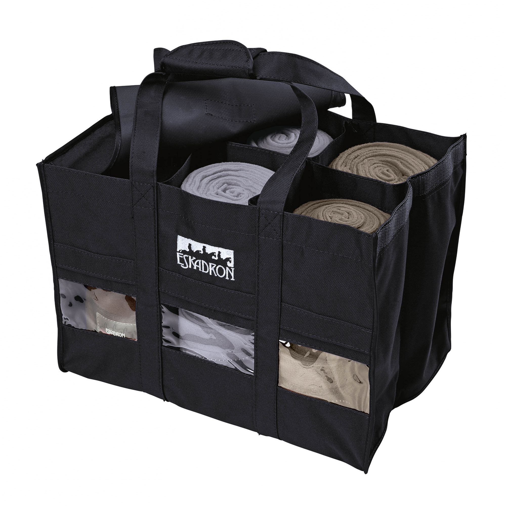 Fásli táska a klasszikus Eskadron kollekcióból. Kiváló minőségű anyagból készült, amely nagyon erős és szakadásálló. Ezen kívül válaszfalak találhatók benne, amelyekben 12 fáslit lehet elhelyezni, védve őket a különféle szennyeződésektől és a sérülésektől. A táska elejére dekoratív Eskadron logó került.