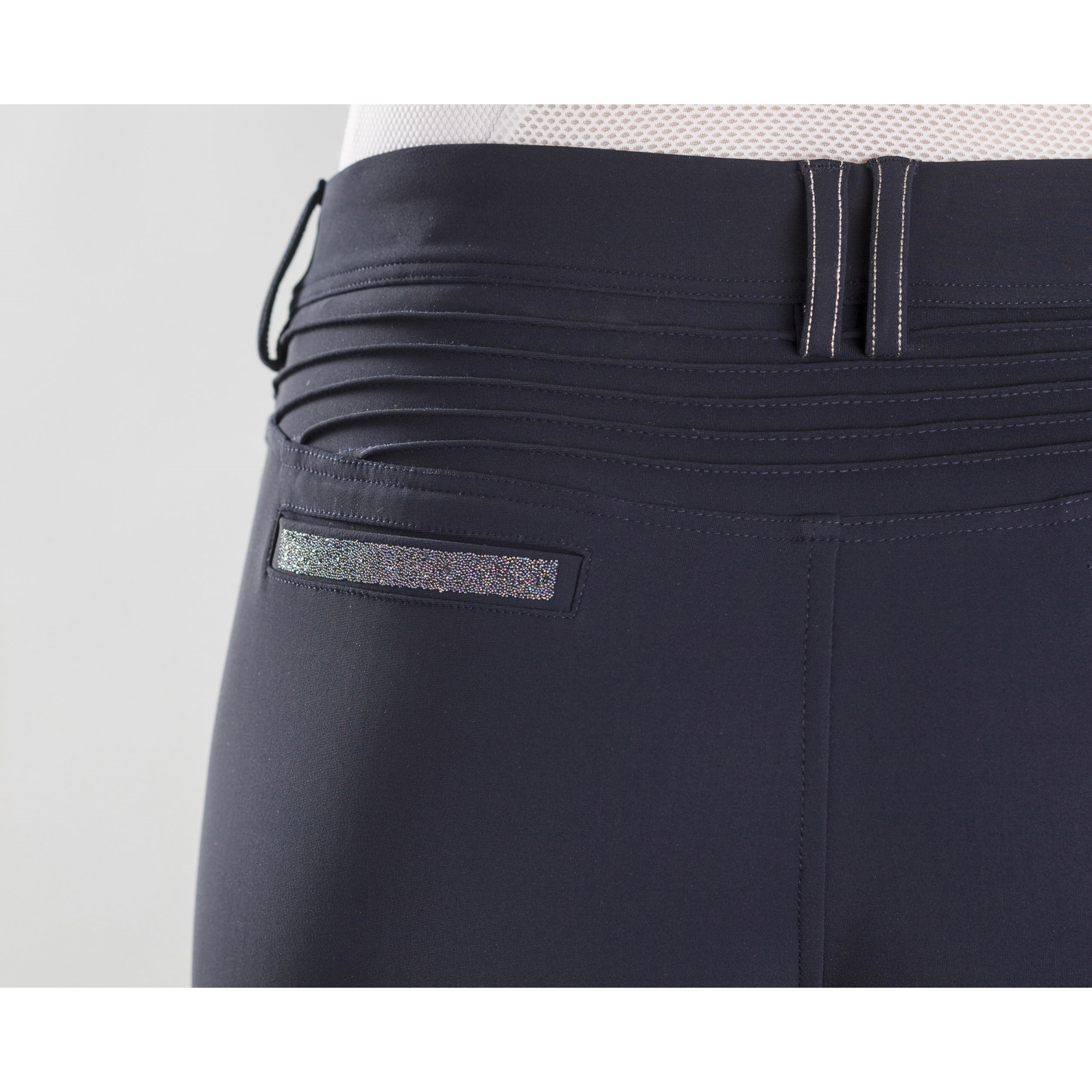lovaglónadrágok hátsó zsebénél használták. Könnyű csillogást és eleganciát vezettek be a klasszikus modellbe, amely edzés közben is gyönyörűen mutat. A Swarovski kristályok a legmagasabb minőségű luxuskristályok gyűjteményei. Sokféle színben találkozhatunk különféle formákkal, opálos effektusok hozzáadásával. Ezeknek az effektusoknak köszönhetően a kristályok a szivárvány minden árnyalatában csilloghatnak.