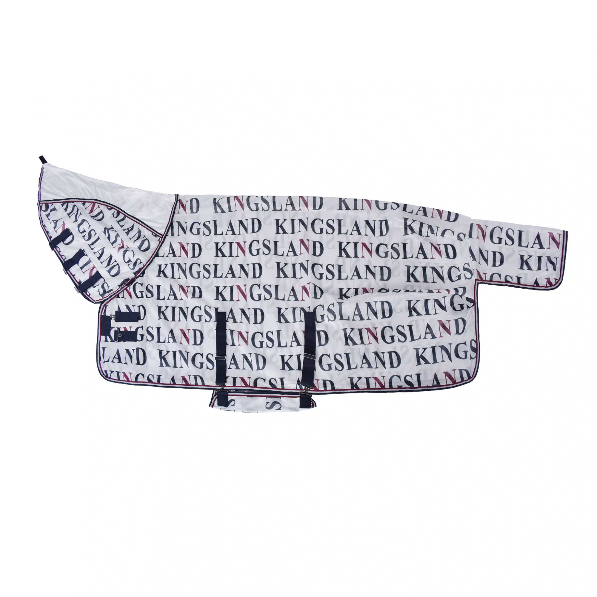 Kingsland lótakaró. Nagyon jó minőségű anyagból készült, ami tökéletesen légáteresztő, komfortos érzést kölcsönöz a ló bőrével érintekzve és nagyon strapabíró is. A lótakaró kapucnival rendelkezik, valamint három állítható nyakpánttal. A hátsó részen egy farok, a has alatt pedig két állítható pánt található. Dekoratívan a lótakaró teljes felületén Kingsland logóval ellátott applikáció található.