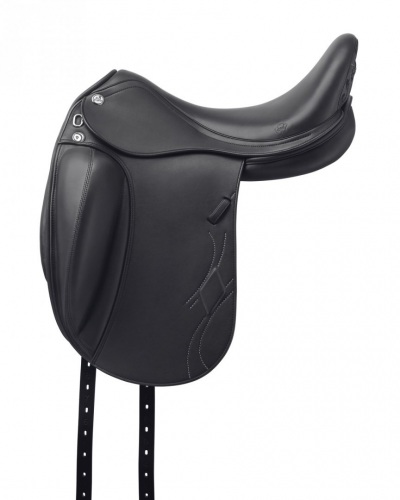 Jeżeli chodzi o moje wrażenia, mimo masywnych bloków kolanowych i głębokiego siedziska, siodło absolutnie nie zakleszcza jeźdźca, wręcz przeciwnie – daje poczucie swobodnego dosiadu blisko konia. Mimo standardowej tybinki (zazwyczaj wybieram tybinkę S – skróconą), miałam poczucie prawidłowego i niewymuszonego ułożenia nóg, z możliwością swobodnego oddziaływania łydkami na boki konia. W przypadku konia z wydajnym ruchem, zwłaszcza w galopie, siodło „zabiera” jeźdźca ze sobą, umożliwiając prawidłową pracę bioder bez ich zblokowania. Konie bardzo pozytywnie przyjęły to siodło, co manifestowało się dobrą ruchomością łopatek i swobodną pracą grzbietu, a z pozycji jeźdźca – elastycznym i wygodnym, rozluźnionym ruchem. Warto to podkreślać, bo wielu jeźdźców, jak ja, ma różne konie – i siodło dające taką swobodę (w moim przypadku naprawdę dwóm skrajnie różnym koniom!) to naprawdę skarb.