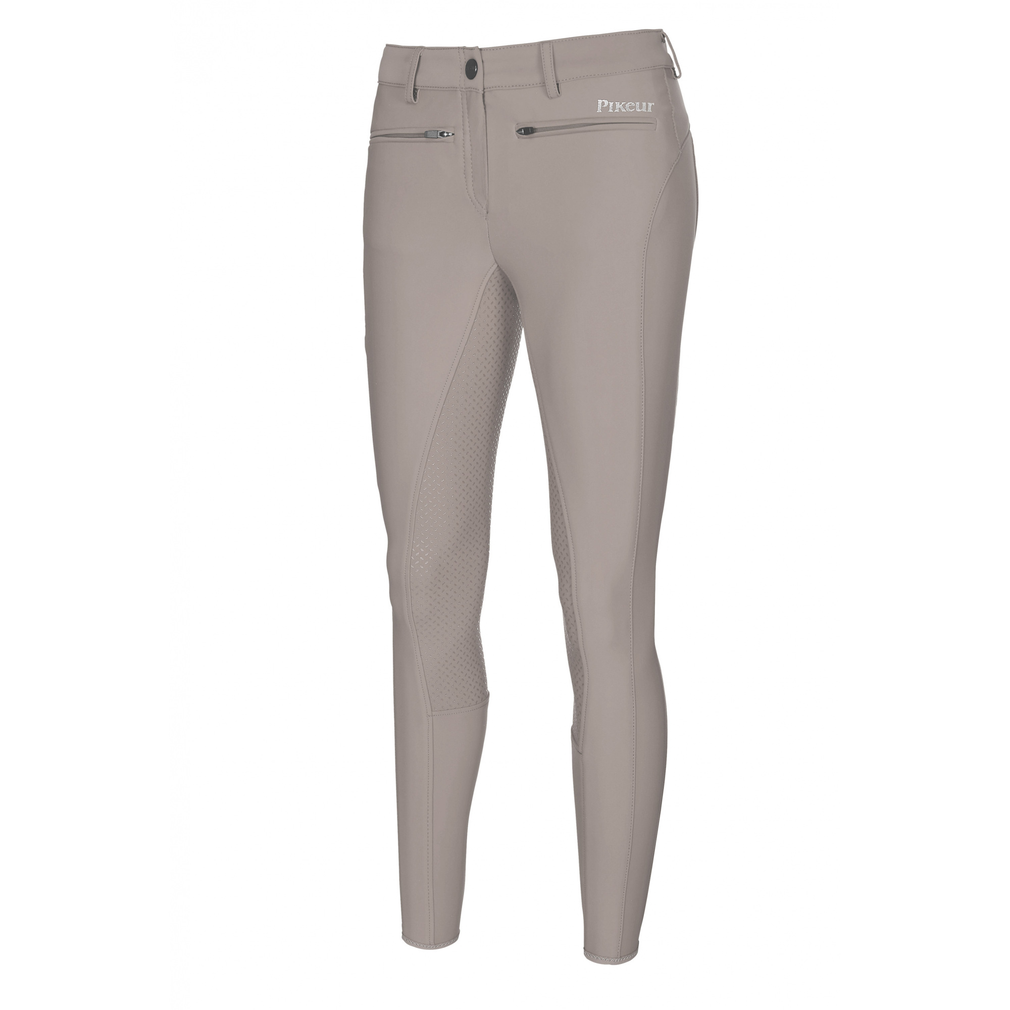 Damskie bryczesy z pełnym, silikonowym lejem - gripem, który zapewnia komfort i stabilizację w siodle. Wykonane z najwyższej jakości tkaniny elastycznej we wszystkich kierunkach. Oddychające i niezwykle wygodne. Posiadają z przodu dwie kieszonki zapinane na zameczek oraz niezwykle funkcjonalną kieszeń na udzie. Nogawki wykończone elastyczną wstawką. Bryczesy ozdobione małym napisem Pikeur.
