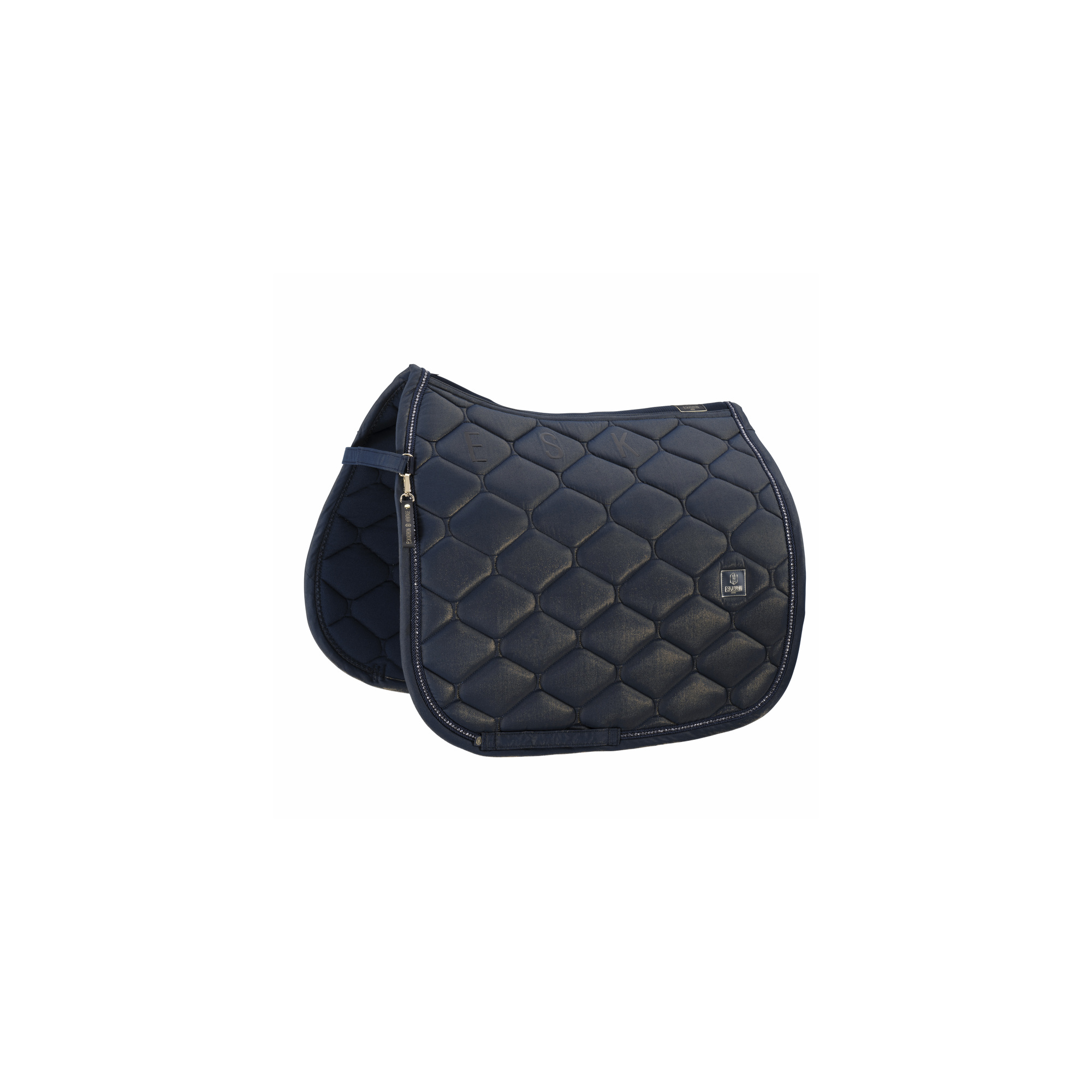 Czaprak Eskadron Glam Crystal to prawdziwy symbol elegancji i wyrafinowania z najnowszej kolekcji Eskadron Heritage 2025/26. Wykonany z luksusowego materiału Glam o subtelnym połysku, przyciąga wzrok i doskonale prezentuje się pod siodłem. Pikowanie w romby nadaje mu klasyczny wygląd, a błyszczące kryształki wzdłuż lamówki dodają wyjątkowego blasku. Wnętrze czapraka wykonane z oddychającej tkaniny technicznej gwarantuje komfort i skuteczne odprowadzanie wilgoci. Optymalne wypełnienie zapewnia amortyzację i chroni koński grzbiet przed naciskiem. Subtelne logo Heritage dopełnia ekskluzywnego charakteru całości. To czaprak, który łączy funkcjonalność z elegancją – idealny na zawody i treningi.