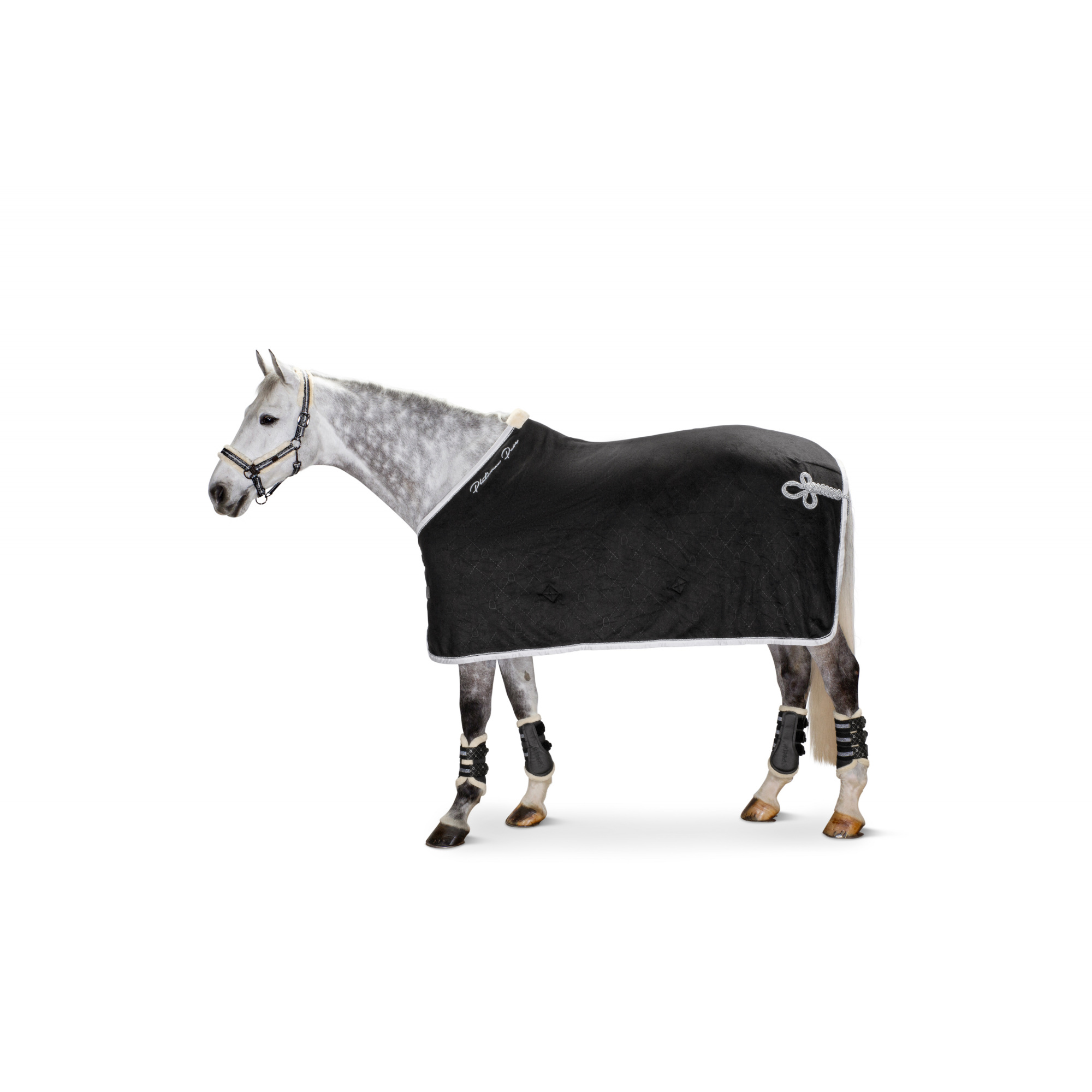 Derka wykonana z wytrzymałego polaru. W tylnej części przy ogonie naszyto wzór zrobiony ze sznurka. Po obydwu stronach szyi naszyto nazwę kolekcji Platinum Pure. Na szyi umieszczono podszycie z futerka. Derka posiada odpinane pasy na rzepy. na piersi derka została wyposażona również w zapięcie za pomocą rzepów.