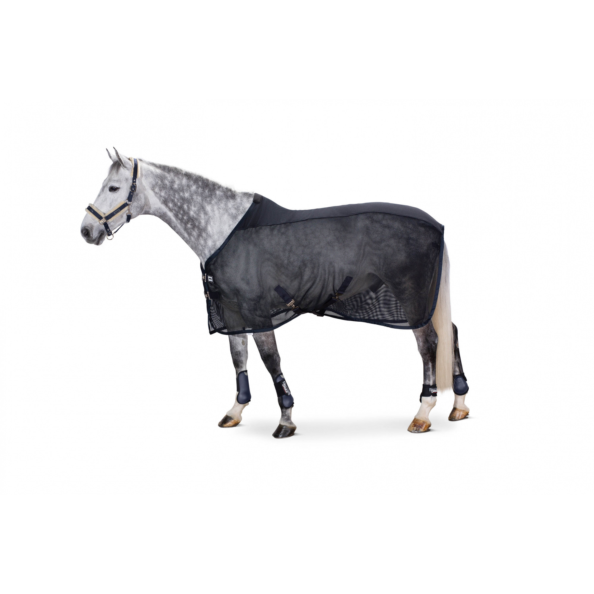 Derka przeciwowadowa Dura Pro Cover uszyta została z mocnej tkaniny poliestrowej. Od spodu podszyta miłą w dotyku bawełnianą tkaniną. Posiada delikatny krój z długimi bokami. Z przodu zapinana na dwa zapięcia haczykowe, a pod brzuchem także zapinana na dwa zapięcia haczykowe jednakże zapinane na krzyż. Dostępna w kilku wariantach kolorystycznych oraz rozmiarowych.