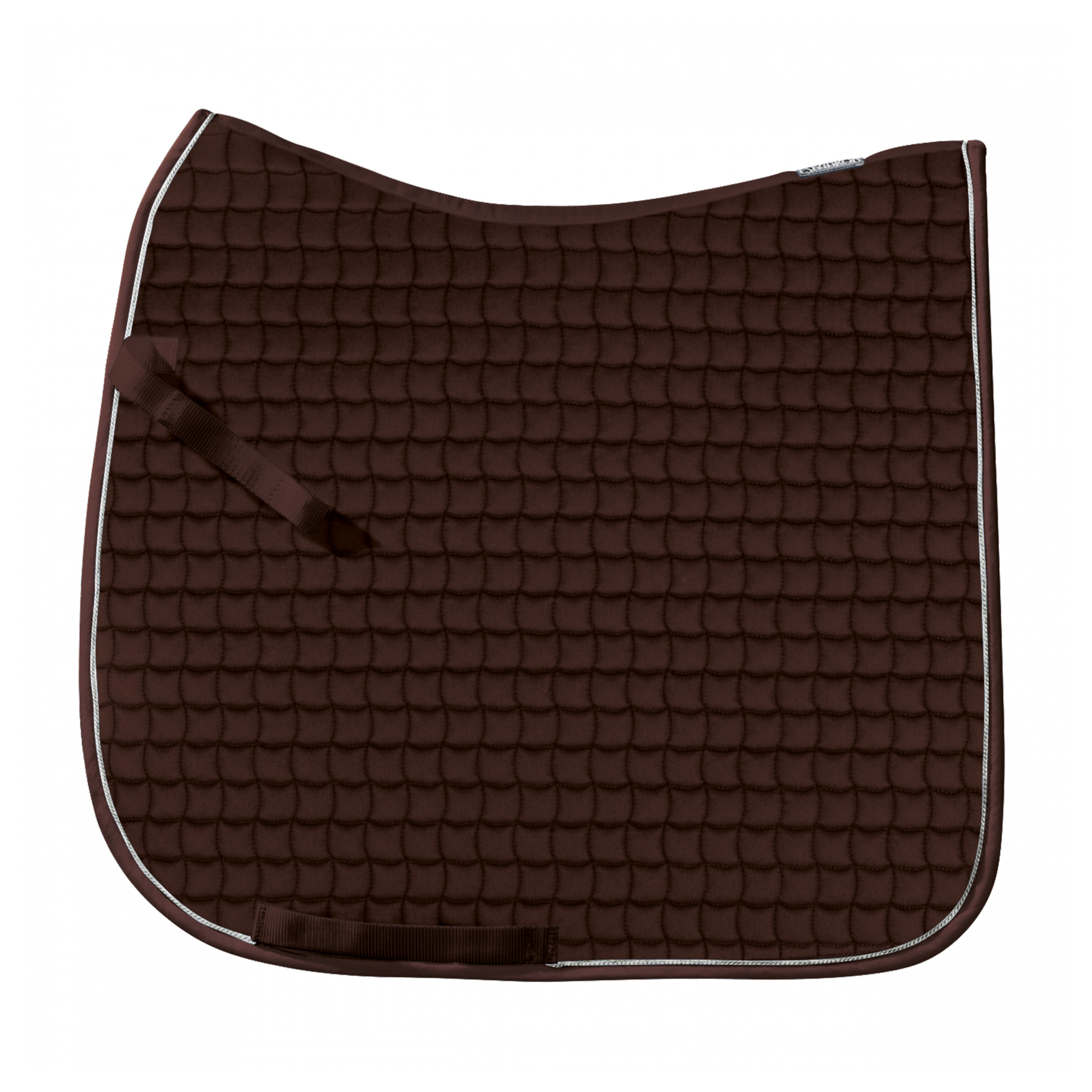 Czaprak dla konia firmy Eskadron. Został wykonany z bardzo dobrej jakości materiału bawełnianego z lekkim wypełnieniem składającym się z pianki poliuretanowej, dzięki czemu zapewnia doskonała ochronę grzbietu konia przed zbyt dużym uciskiem oraz przed otarciami, które mogłyby być spowodowane przez siodło. Dodatkowo czaprak został wyposażony w pasek z przodu do doczepienia do siodła oraz w paski do przełożenia popręgu. Dekoracyjnie na lamówce dodano ozdobny sznurek w kolorze srebrnym.