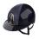 Prezentowany model w kolorze granatowym, posiada błyszczącą skorupę i ozdobiony został granatową wstawką, która dodaje subtelnego błysku. Dodatkową ozdobę stanowią również srebrne elementy kratki wentylacyjnej. Taka konfiguracja wspaniale współgra z każdym elementem stroju jeździeckiego tworząc spójną całość.