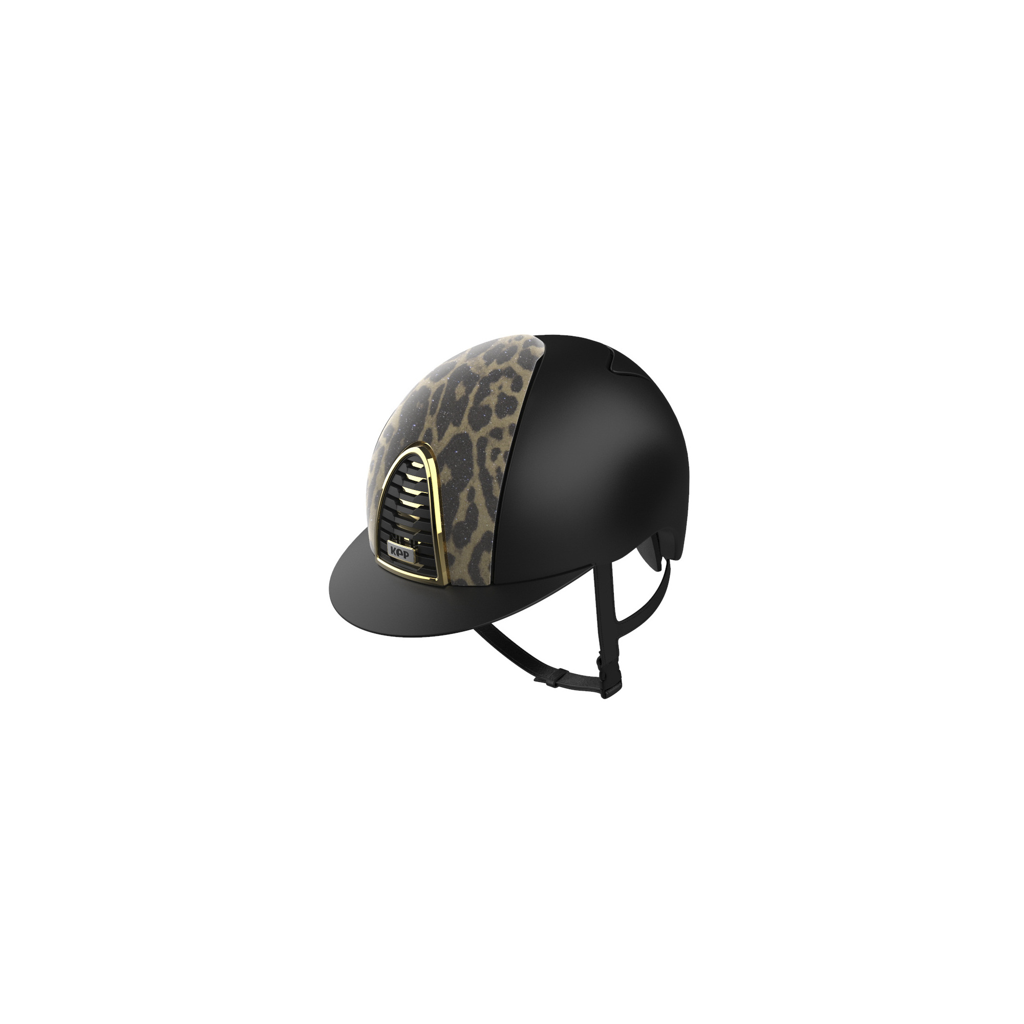 Prezentowany model to połączenie matowej, czarnej skorupy z oryginalną wstawką, która pokryta została subtelnym brokatem. Kask posiada również ozdobne, złote obramowanie kratki wentylacyjnej. Klasyczne kolorystyka w połączeniu z niebanalnym zdobieniem to idealna propozycja dla osób, które chcą się wyróżniać na arenie jeździeckiej.