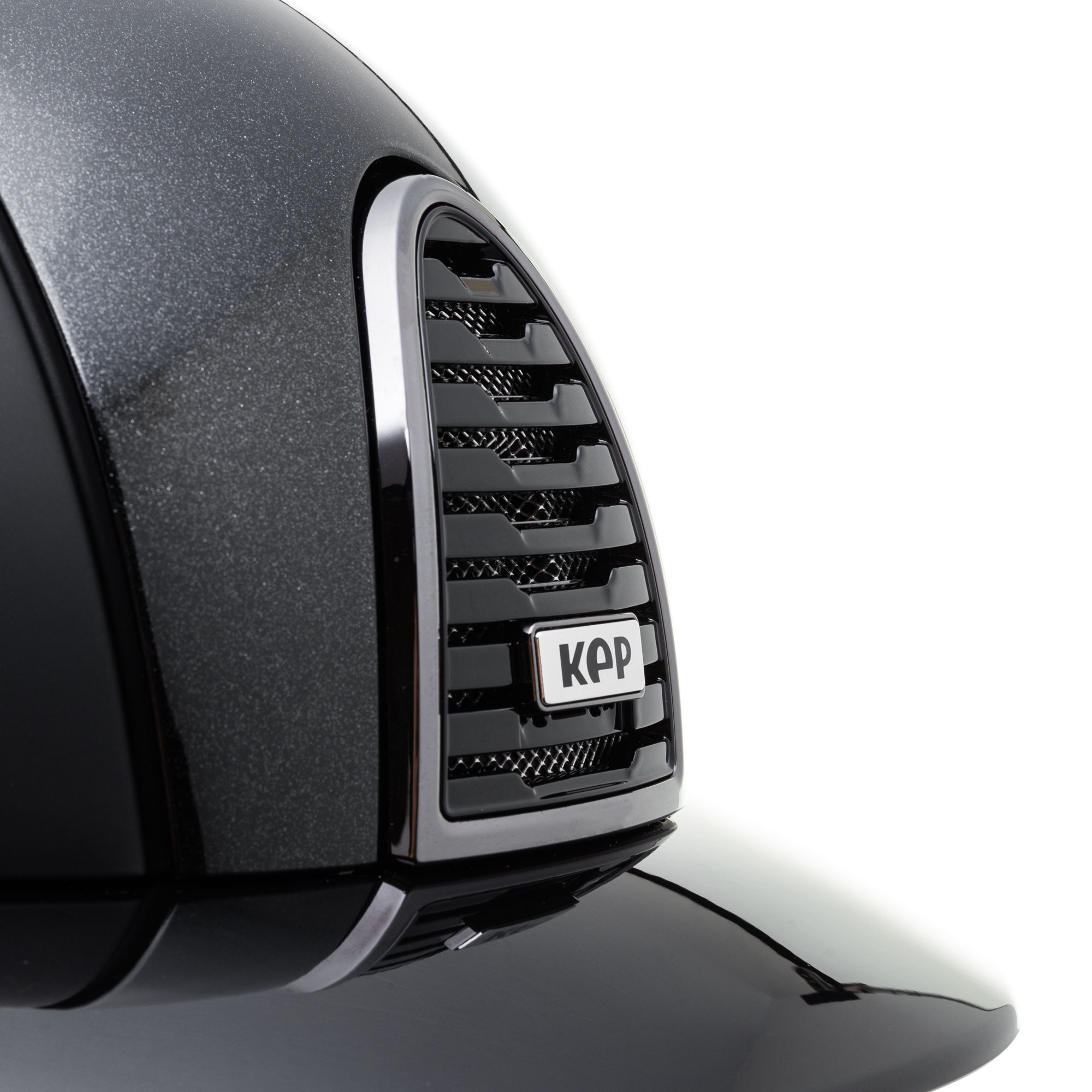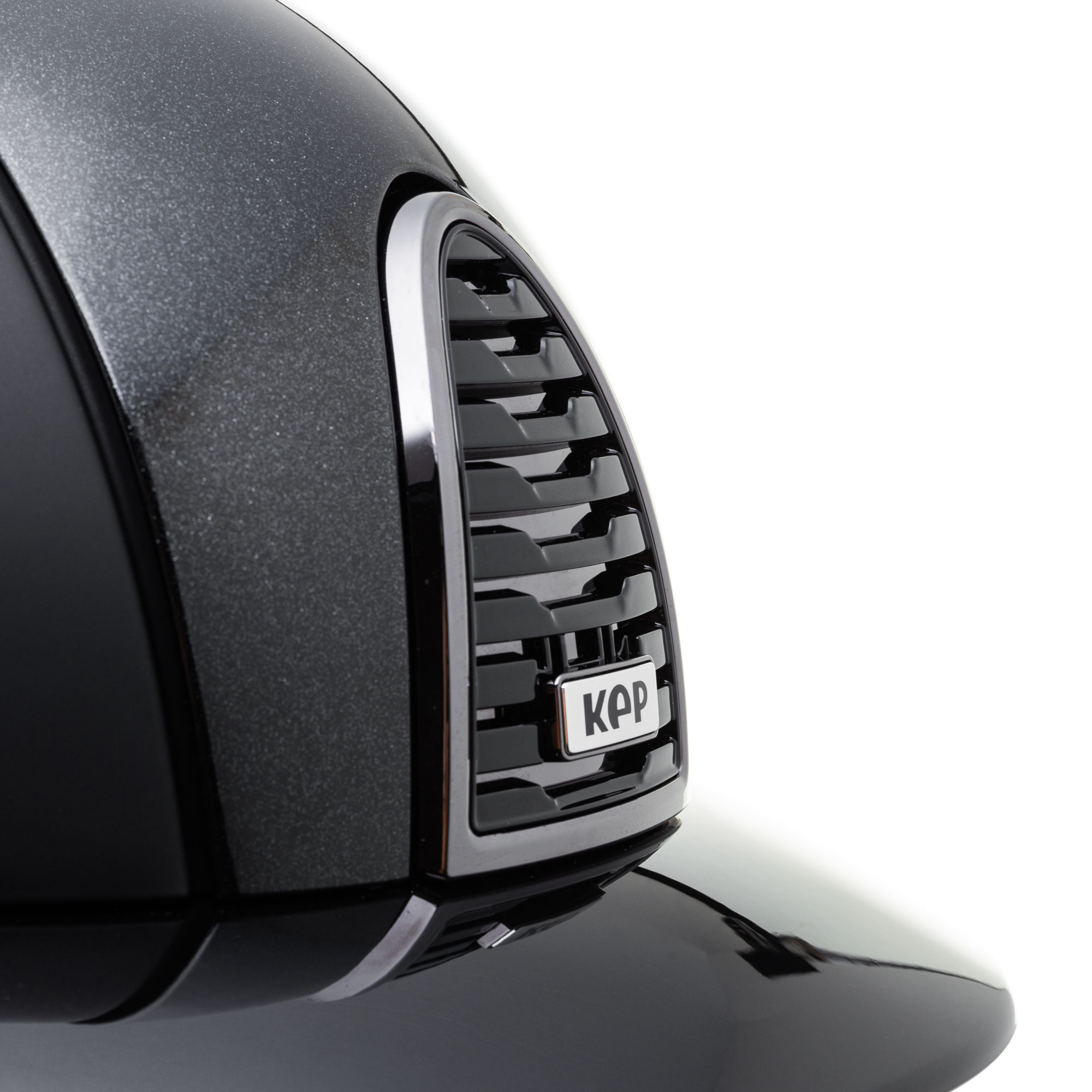 Prezentowany model występuje w odcieniach czerni. Wyróżniającym elementem jest błyszcząca wstawka, która pokryta została mieniącymi się drobinkami. Kask posiada również kratkę wentylacyjną w kontrastującym, srebrnym kolorze. Połączenie klasyki z delikatnym błyskiem idealnie podkreśla styl jeźdźca.