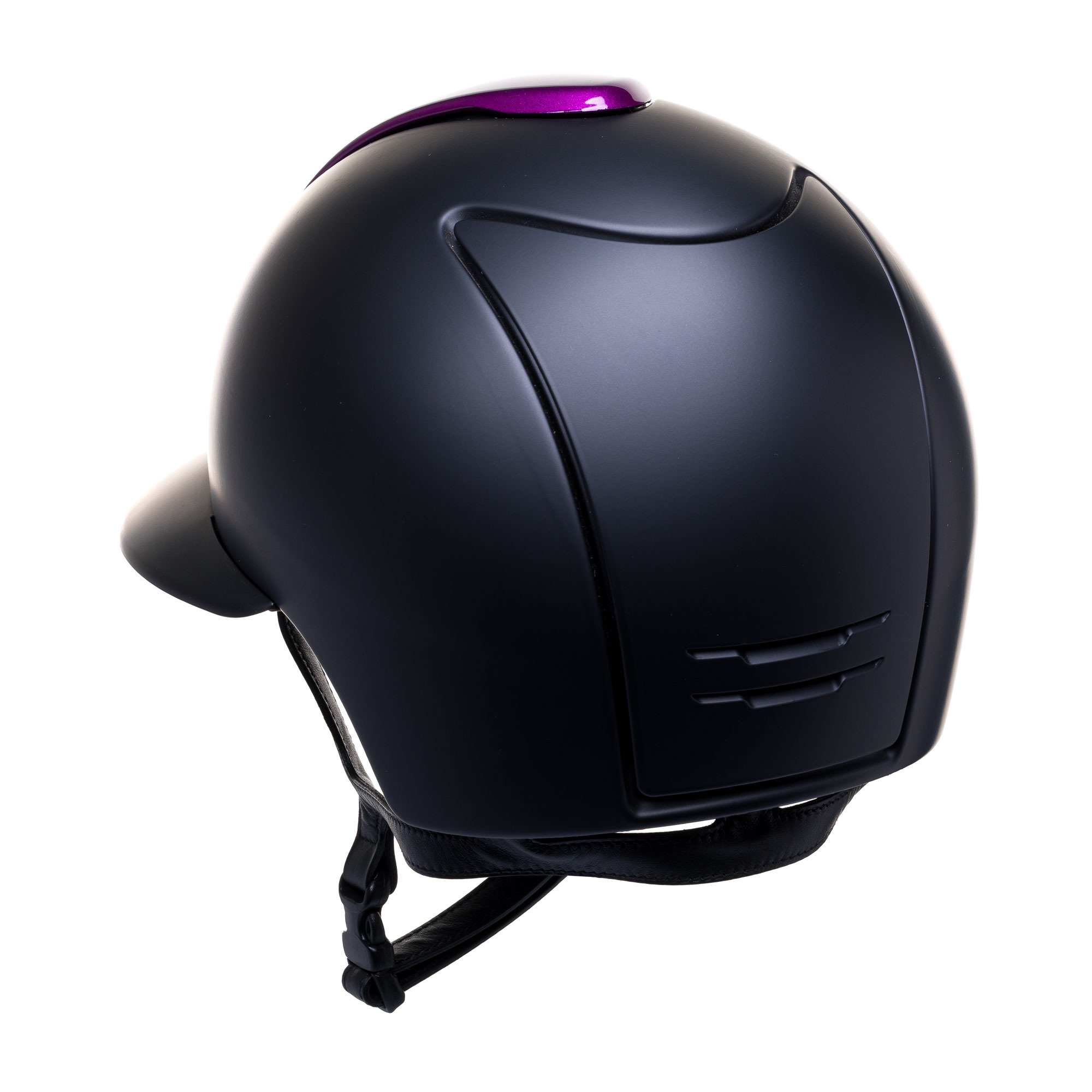 Dzięki szerokim możliwościom personalizacji kolorów, wykończeń i dodatków, każdy jeździec może stworzyć unikalny kask dopasowany do swojego stylu. Wszystkie modele Cromo 2.0 wyposażone są także w zintegrowany mikrochip, który umożliwia zapis danych zdrowotnych w aplikacji KEP App, ułatwiając identyfikację w sytuacjach awaryjnych. Ten kask to personalizowany model Cromo 2.0 z panelem w kolorze Viola Metal i ramką z kryształków Swarovskiego w tym samym kolorze.