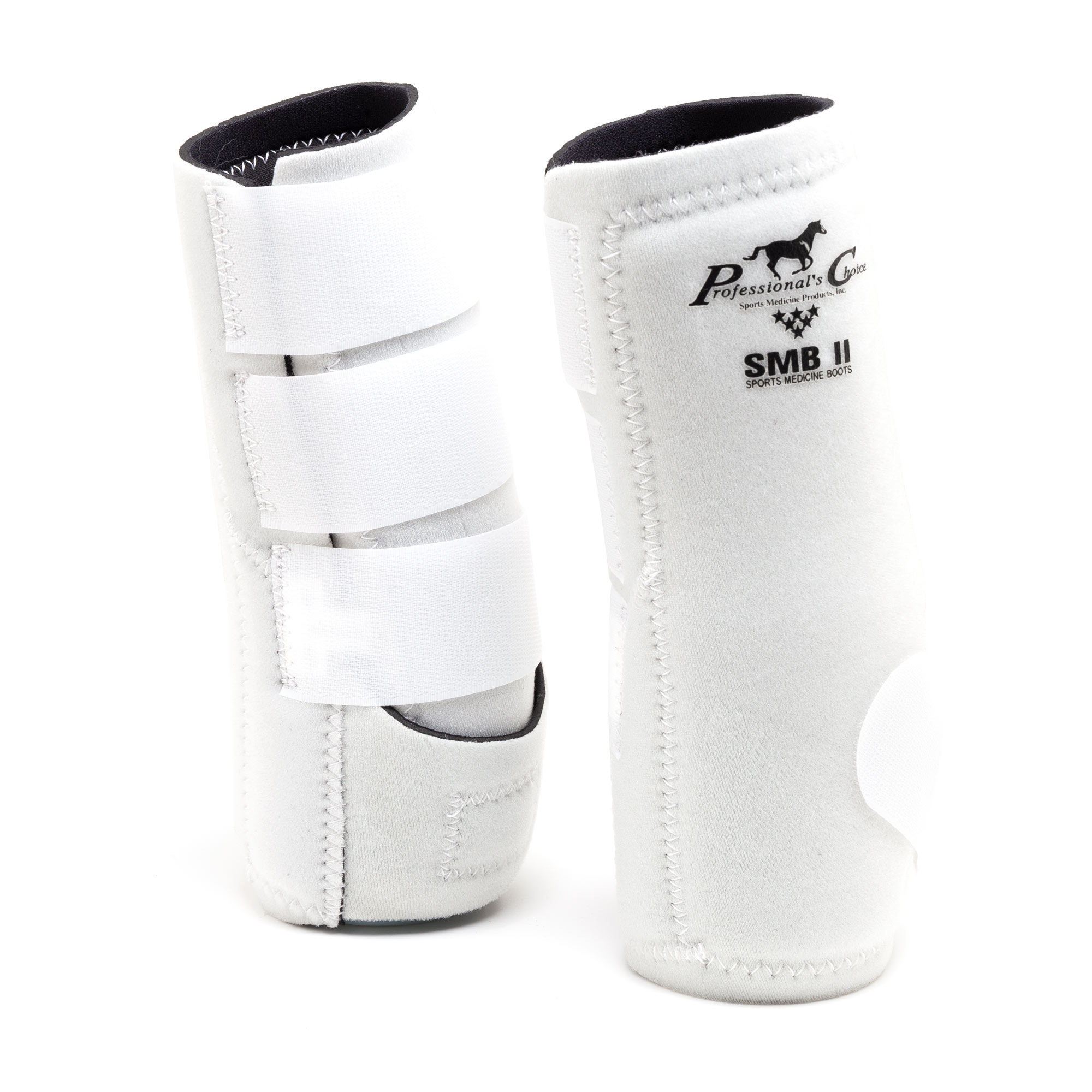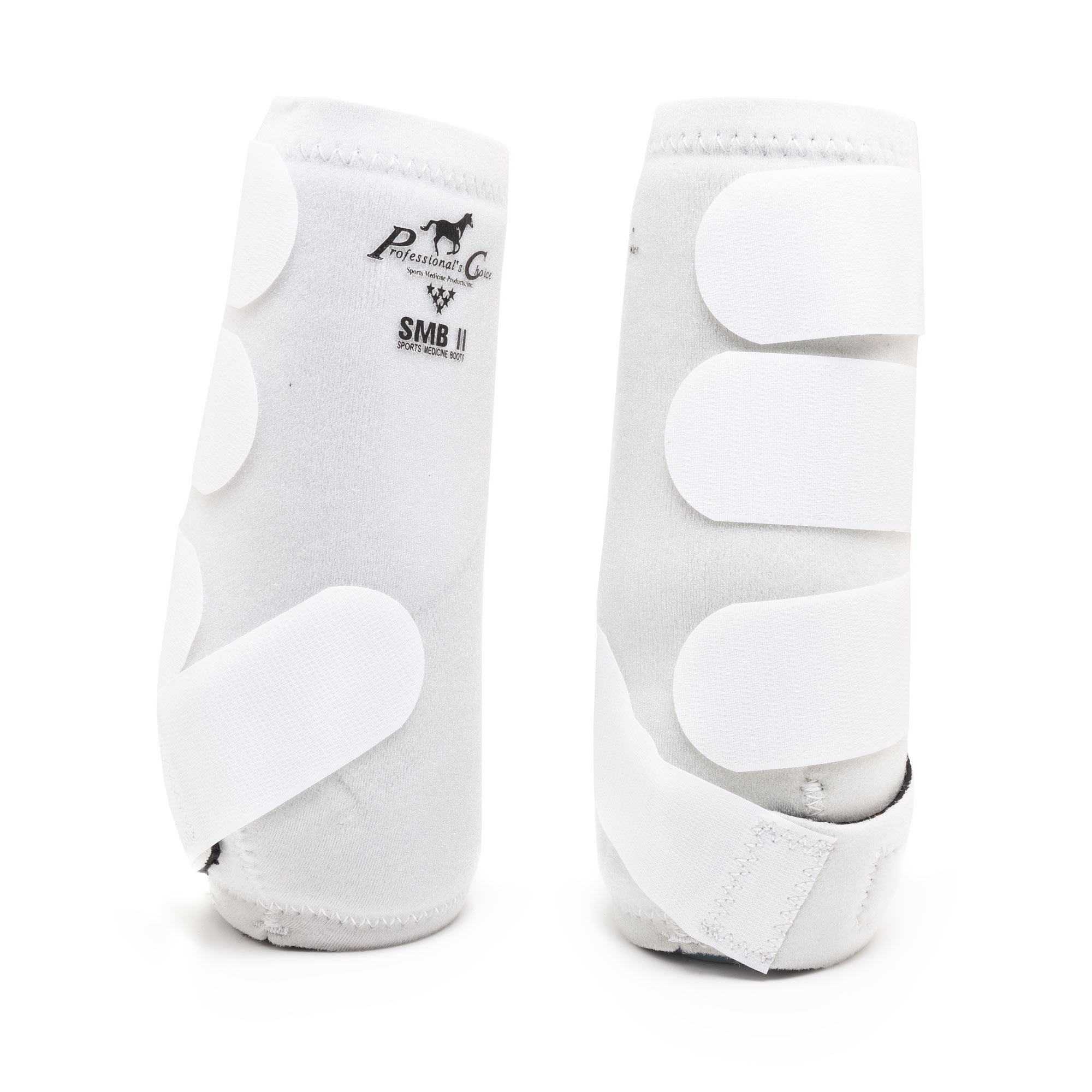 Ochraniacze dla konia firmy Professionals Choice. Ten model ochraniaczy to hybryda dwóch ochraniaczy tej firmy, wewnętrzną część wykonano z neoprenu, który jest miękki i komfortowy dla skóry konia, dodatkowo ochraniacze posiadają podszycie UltraShock. smb chroni ścięgna i tkankę miękką konia oraz świetnie pochłania energię jaka wytwarza się podczas uderzenia, dzięki czemu ochraniacze zapewniają doskonałą ochronę końskich nóg oraz zapewniają komfort i swobodę ruchów, dzięki dłuższemu paskowi, który rozciąga sie przy każdym kroku. Zostały wyposażone w zapięcie na cztery szerokie rzepy, które stabilnie utrzymują ochraniacze w miejscu a dekoracyjnie w górnej części dodano aplikację z logo firmy Professionals Choice.