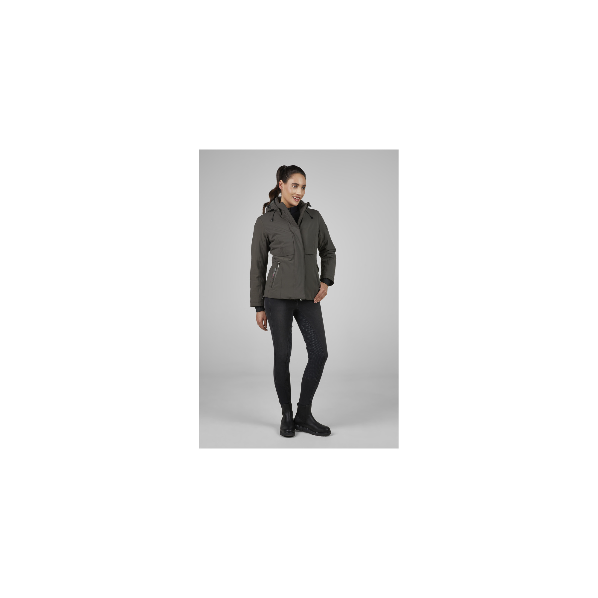 Dzięki nowoczesnym technologiom i sportowej elegancji ta kurtka doskonale sprawdzi się zarówno podczas jazdy konnej, jak i na co dzień, zapewniając ochronę, styl i pełną wygodę w chłodniejsze, deszczowe dni.