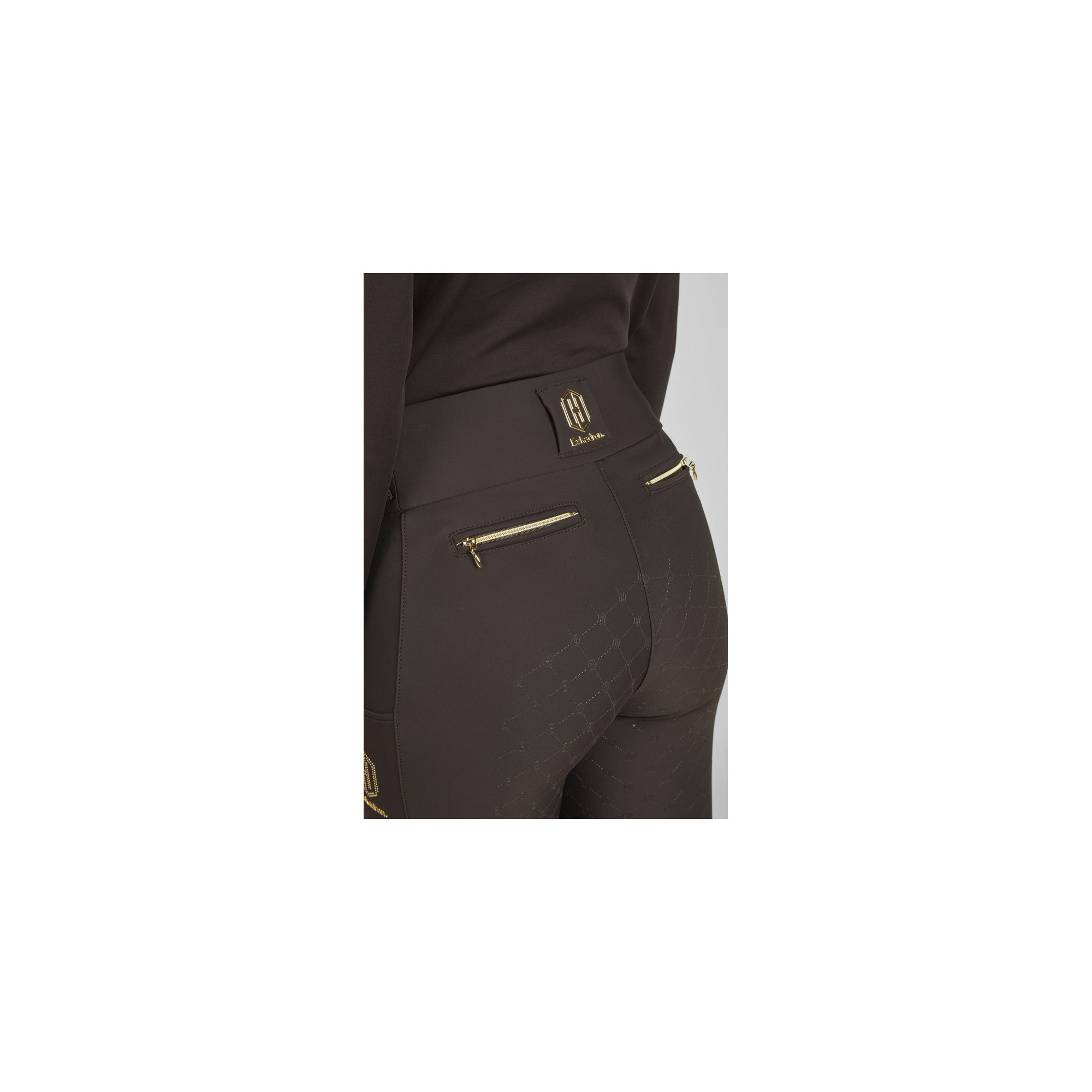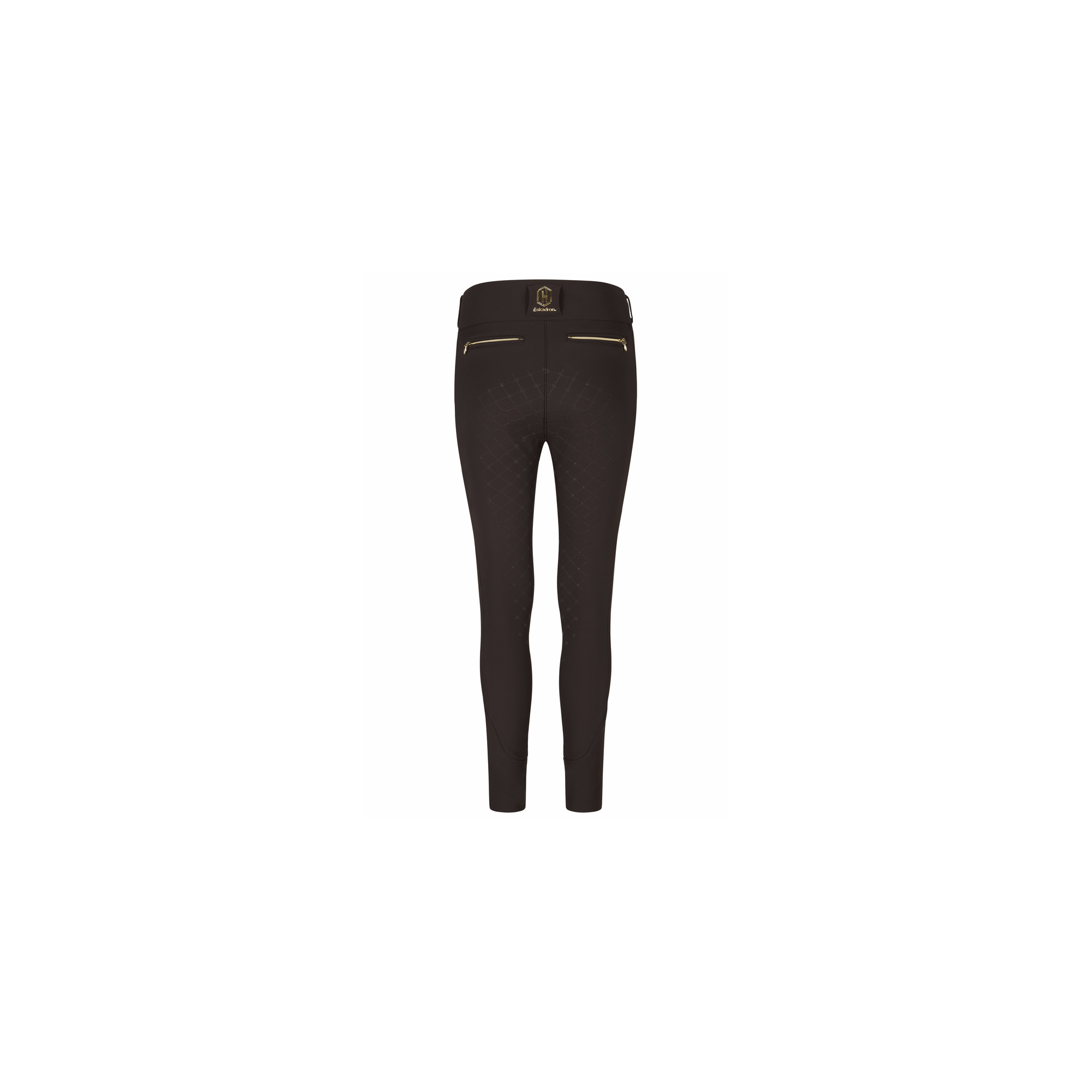 Legginsy jeździeckie Eskadron Pro Full Grip Heritage to perfekcyjne połączenie elegancji, funkcjonalności i komfortu — stworzone z myślą o wymagających jeźdźcach. Wykonane z elastycznego materiału 4-way-stretch, zapewniają pełną swobodę ruchów oraz modelujący efekt, który podkreśla sylwetkę. Wnętrze legginsów zostało delikatnie podszyte, dla większego komfortu i ciepła w chłodniejsze dni. Dekoracyjne przeszycia w miejscu zamka nadają im klasyczny, bryczesowy wygląd, zachowując jednocześnie wygodę legginsów. Z obu stron znajdują się praktyczne kieszenie na telefon, a z tyłu ozdobne kieszenie z imitacją zamków dodają elegancji. Szeroki, modelujący pas ze szlufkami i emblematem Heritage z tyłu zapewnia idealne dopasowanie i wygodę podczas jazdy. Na jednej nogawce znajduje się subtelny emblemat z kryształkami Heritage, który dopełnia luksusowego stylu. Elastyczne zakończenia nogawek gwarantują perfekcyjne dopasowanie w oficerkach, a pełny, silikonowy lej Heritage Full Grip jest odporny na ścieranie i zapewnia maksymalną przyczepność w siodle.