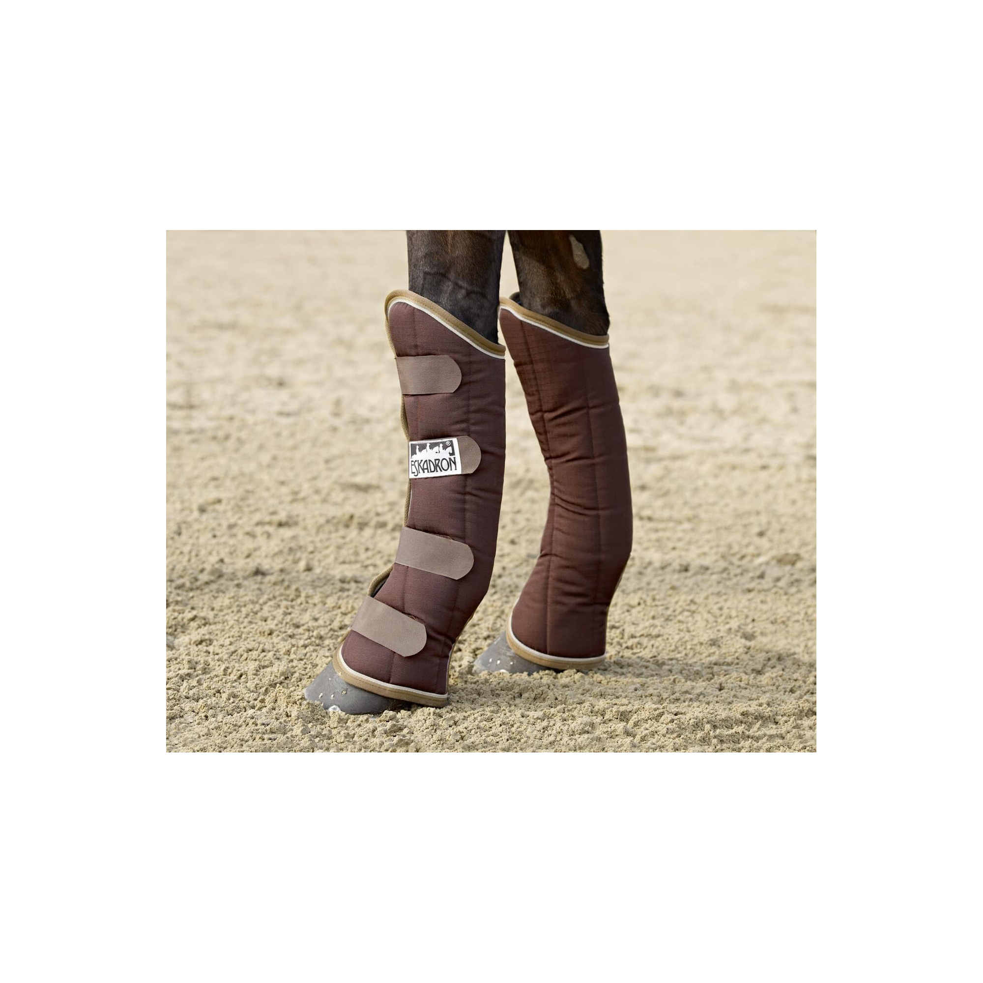 Zestaw ochraniaczy transportowych ripstop pasujących do derki ripstop. Wewnętrzna strona wykonana z materiału bawełnianego przyjaznego dla skóry. Liczne rzepy zapewniają stabilność ochraniaczy na nogach konia. W zestawie znajdują się ochraniacze na przód i tył.