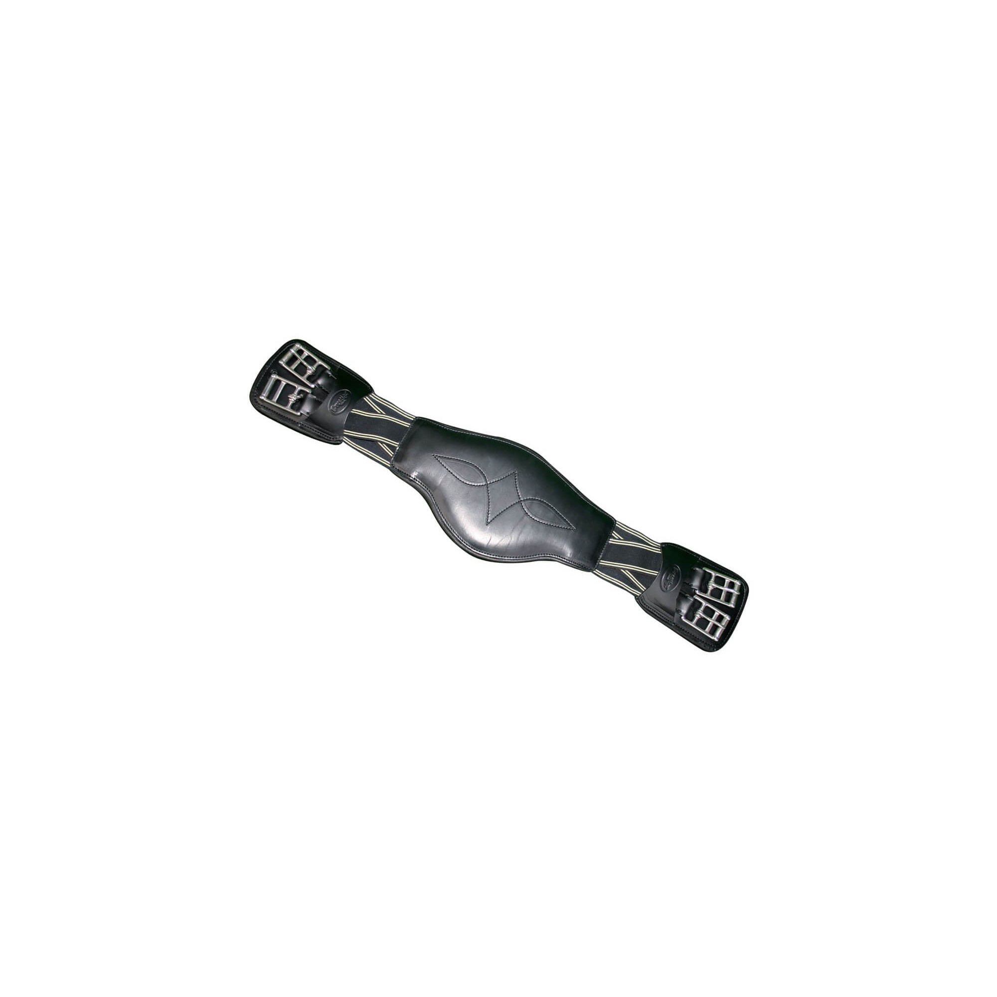 Anatomiczny popręg dedykowany do siodeł ujeżdzeniowych. Specjalnie wyprofilowany kształt popręgu pozwala na nieskrępowany ruch konia, nie wywierając przy tym niepożądanego dyskomfortu. Popręg został miękko podszyty w punktach nacisku na mostek i klatkę piersiową konia, czyniac go bardziej komfortowym dla zwierzęcia. Popręg z dwóch stron wyposażony został w krzyżowe gumy, które ułatwiają podpinanie popręgu, a jednocześnie poprawiają ułożenie siodła na grzbiecie konia. Dolna częśc popręgu ozdobiona została eleganckim haftem.