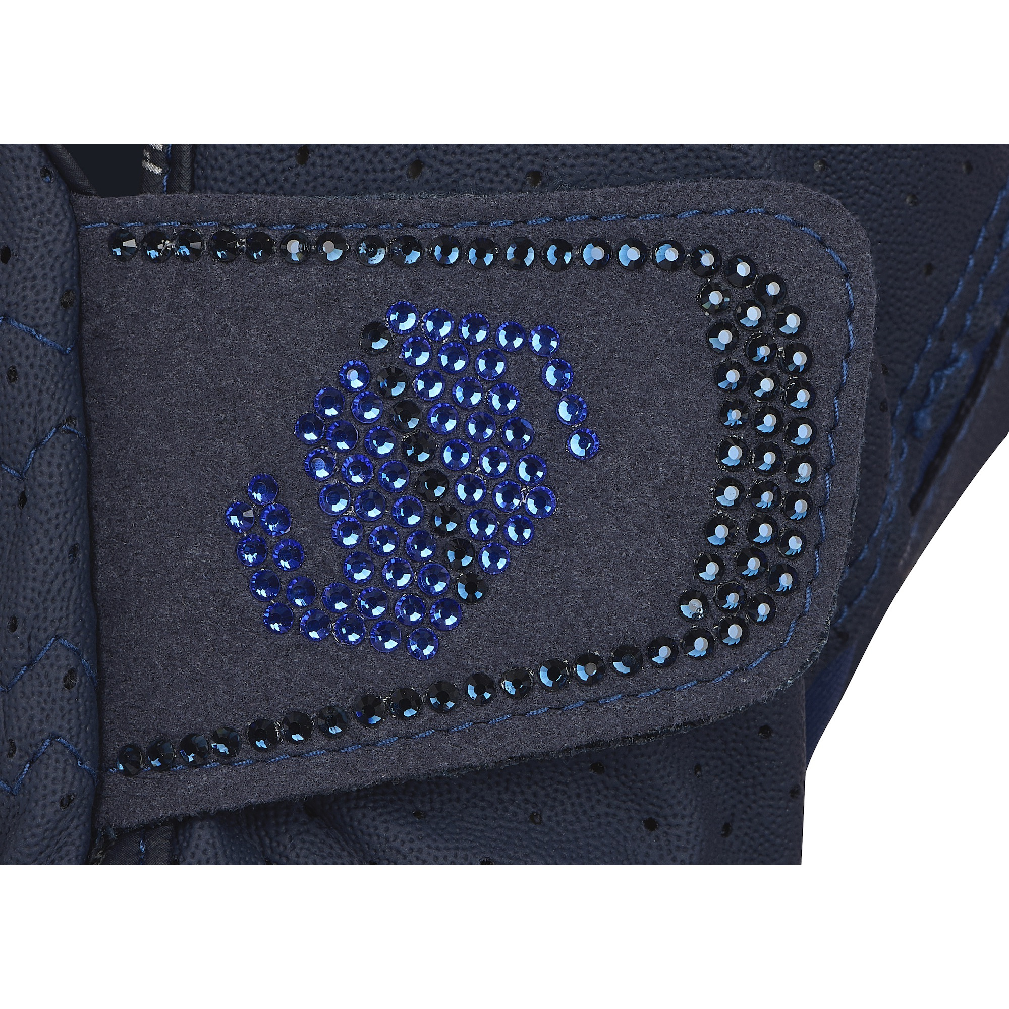 Rękawiczki do jazdy konnej firmy Samshield. Zostały wykonane z wysokiej jakości materiału, który jest bardzo elastyczny, doskonale przepuszczający powietrze oraz komfortowy dla skóry. Posiadają one wstawki po wewnętrznej stronie dłoni oraz pomiędzy palcami dla lepszej przyczepności do wodzy oraz wygodne zapięcie przy nadgarstku na rzep z możliwością regulacji dla optymalnego dopasowania. Ponadto posiadają aplikację z logo firmy Samshield umieszczona na małym palcu oraz większe logo firmy wykonane z drobnych dwukolorowych kryształków umieszczone na zapięciu.